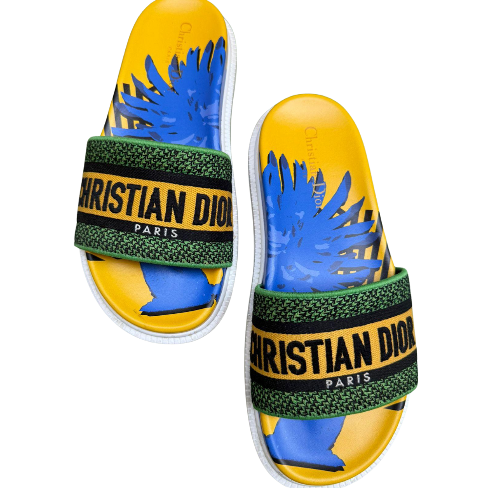 Christian Dior Canvas Printed Slides Women’s Size: 38 Condition: Lightly usedAccessories: Dust bag