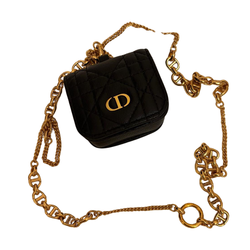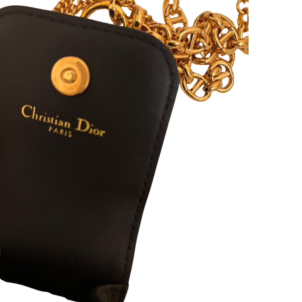 Dior Black Cannage Leather Caro Airpods Case with Chain