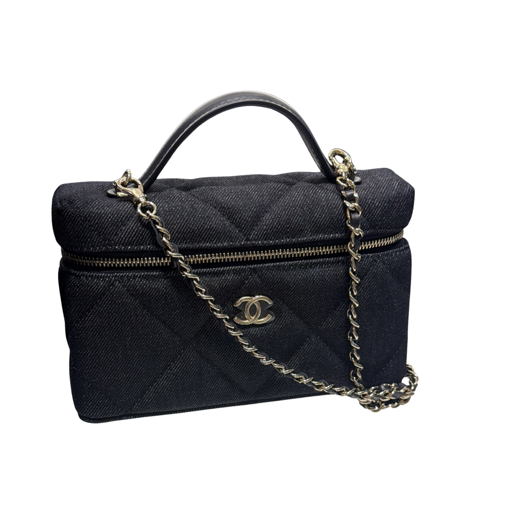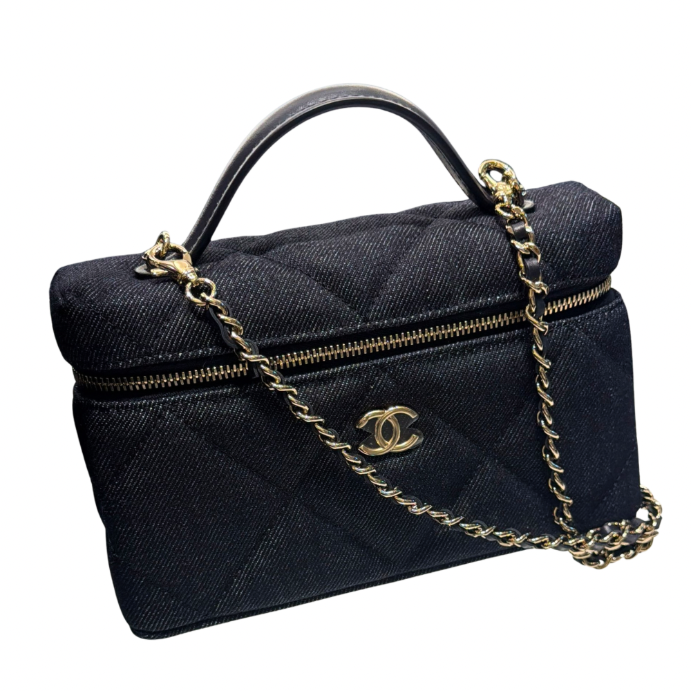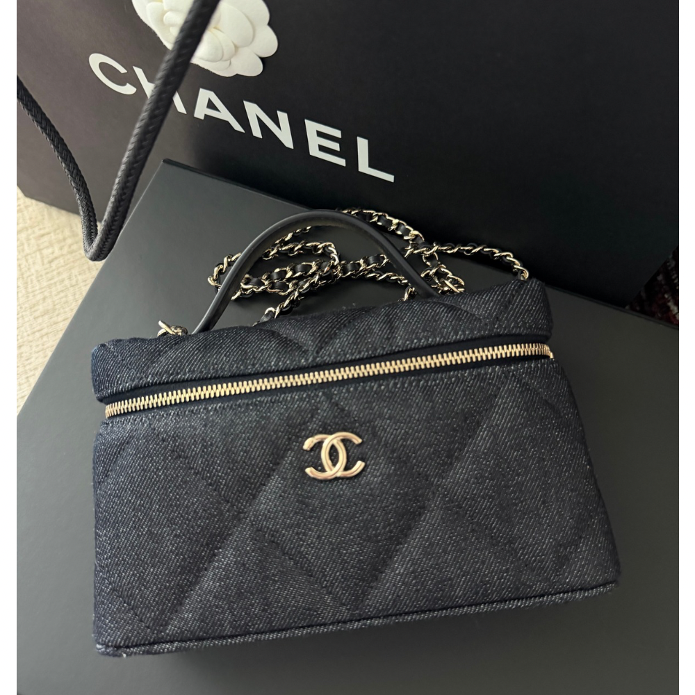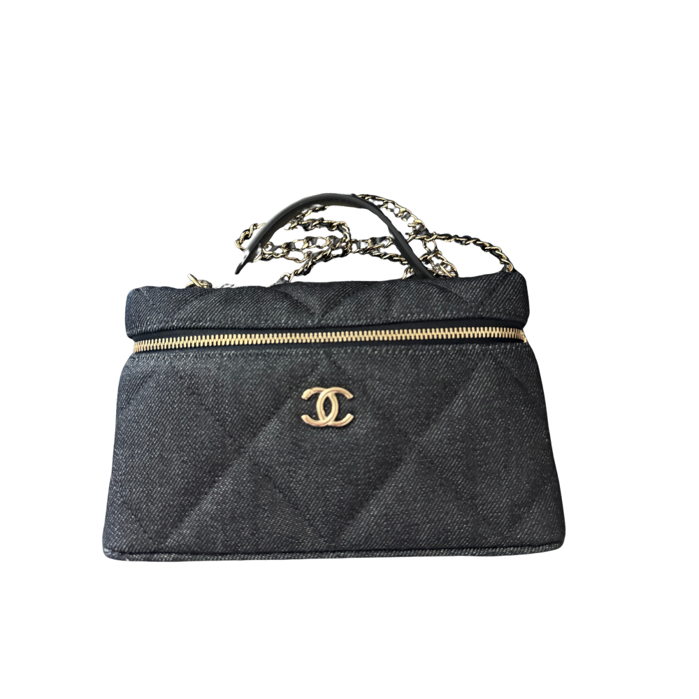 Chanel Vanity with Chain Denim & Gold Metal, Dark Blue