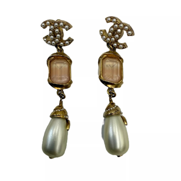 Chanel Pearl Drop Swing Yellow Gold Earrings