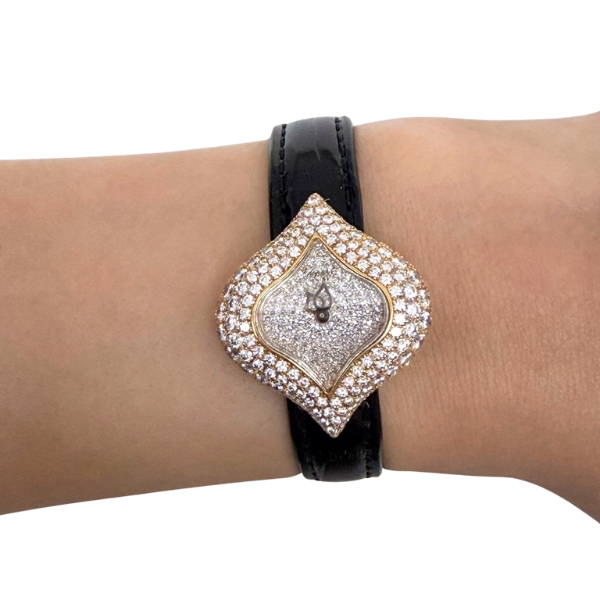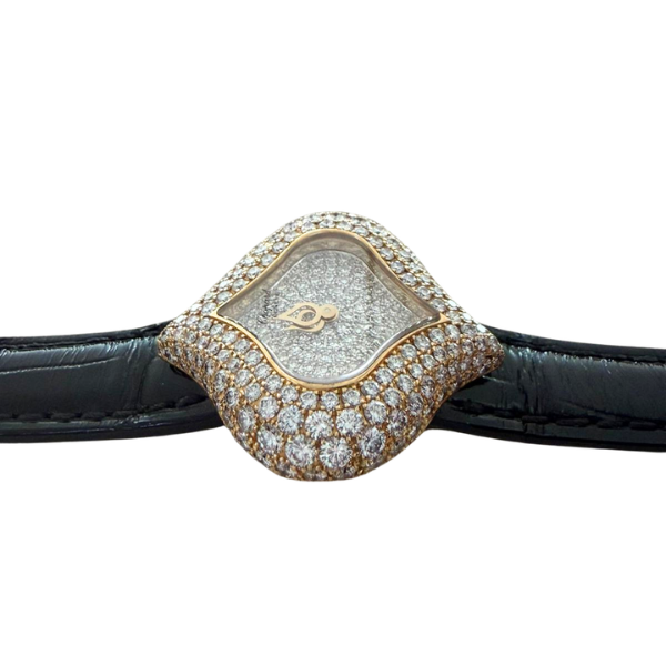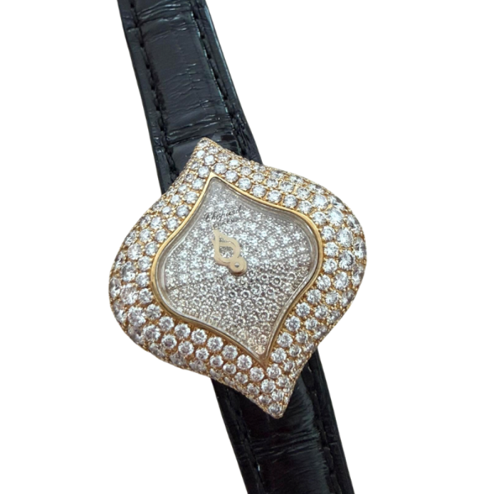 Chopard 26mm Watch – Yellow Gold with Paved Diamond Dial & Bezel