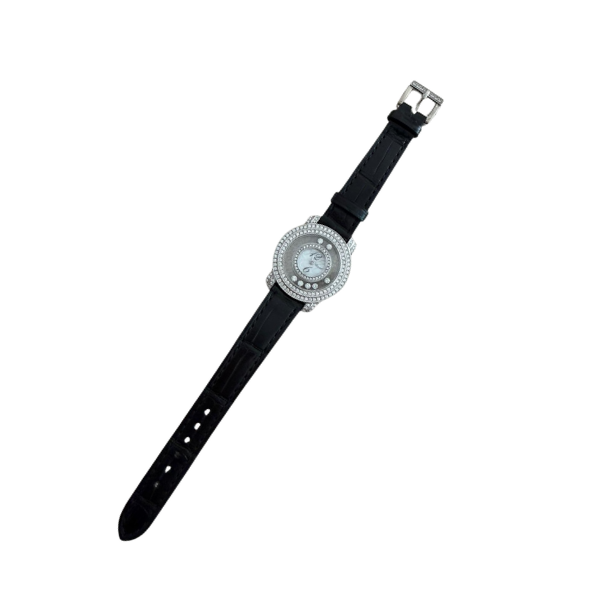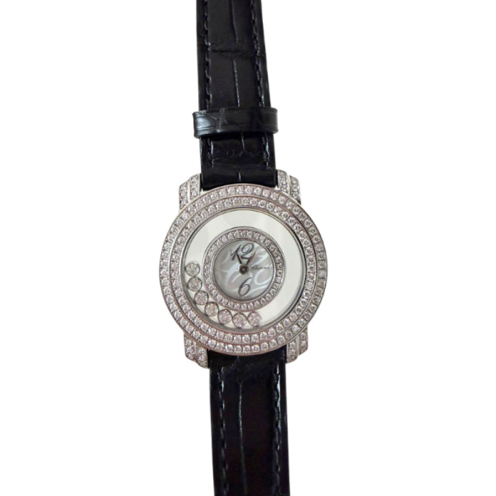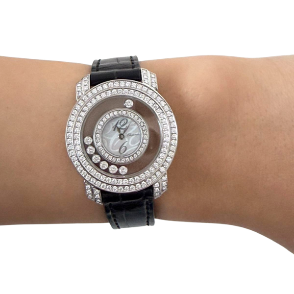 Chopard Happy Diamonds Watch – White Gold 30mm with MOP Dial, Diamond Bezel & Lugs