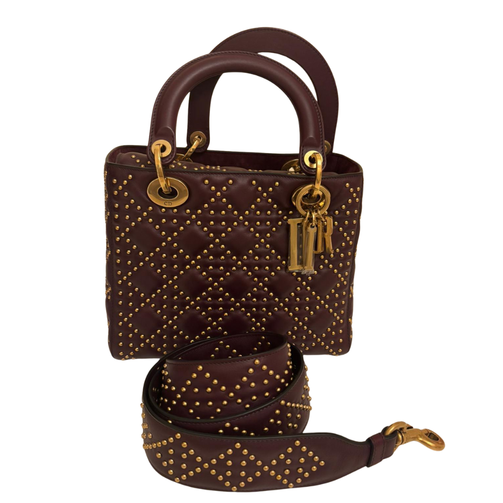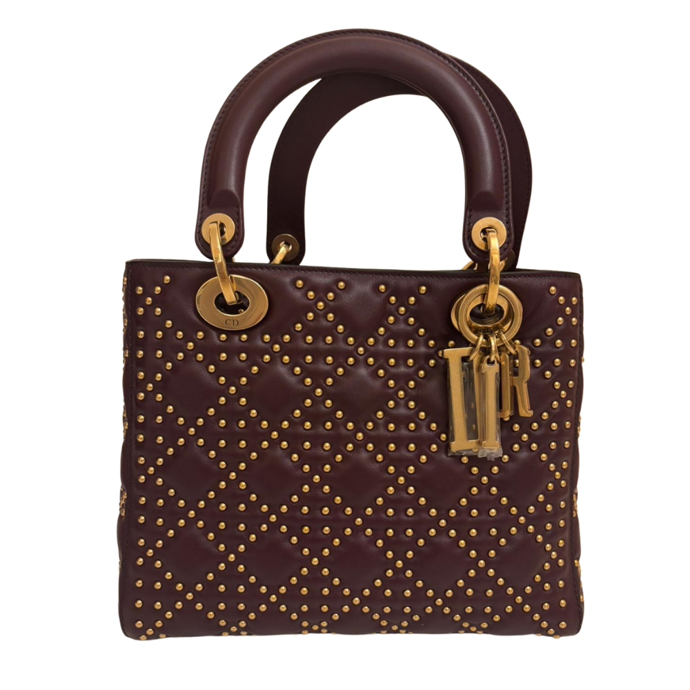 CHRISTIAN DIOR Calfskin Cannage Studded Supple Lady Dior Deep Amaranth
