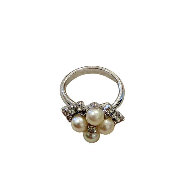 material: silver toned , faux pearls , crystals.