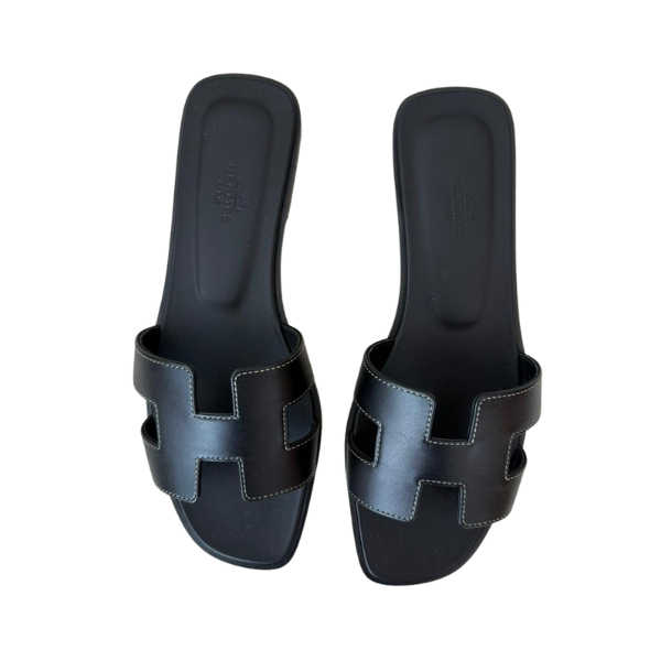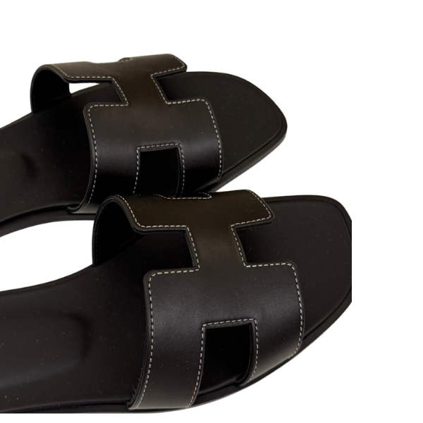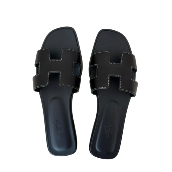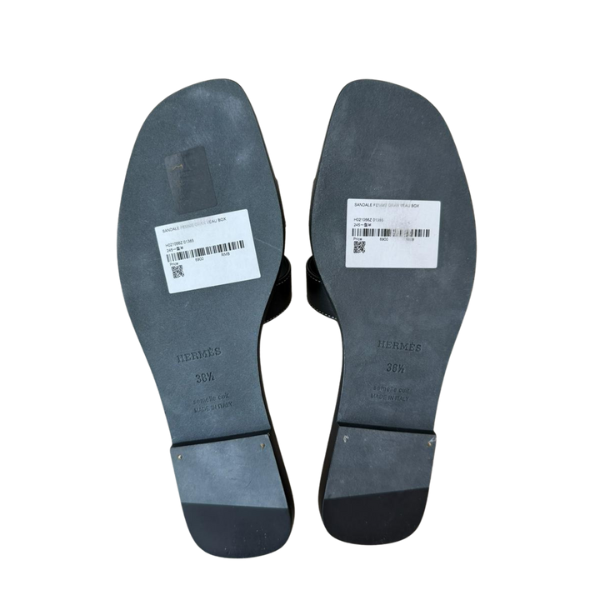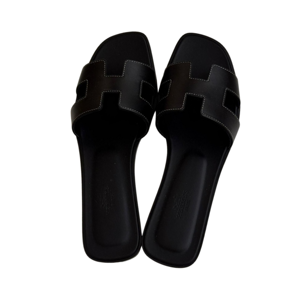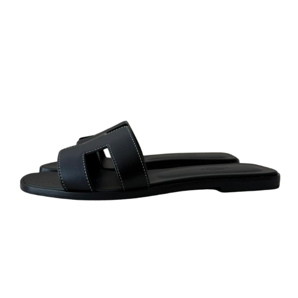 Hermès Black Oran Sandals with White Stitching Size: 38.5 Condition: NewAccessories: Receipt + Box + Dust Bag