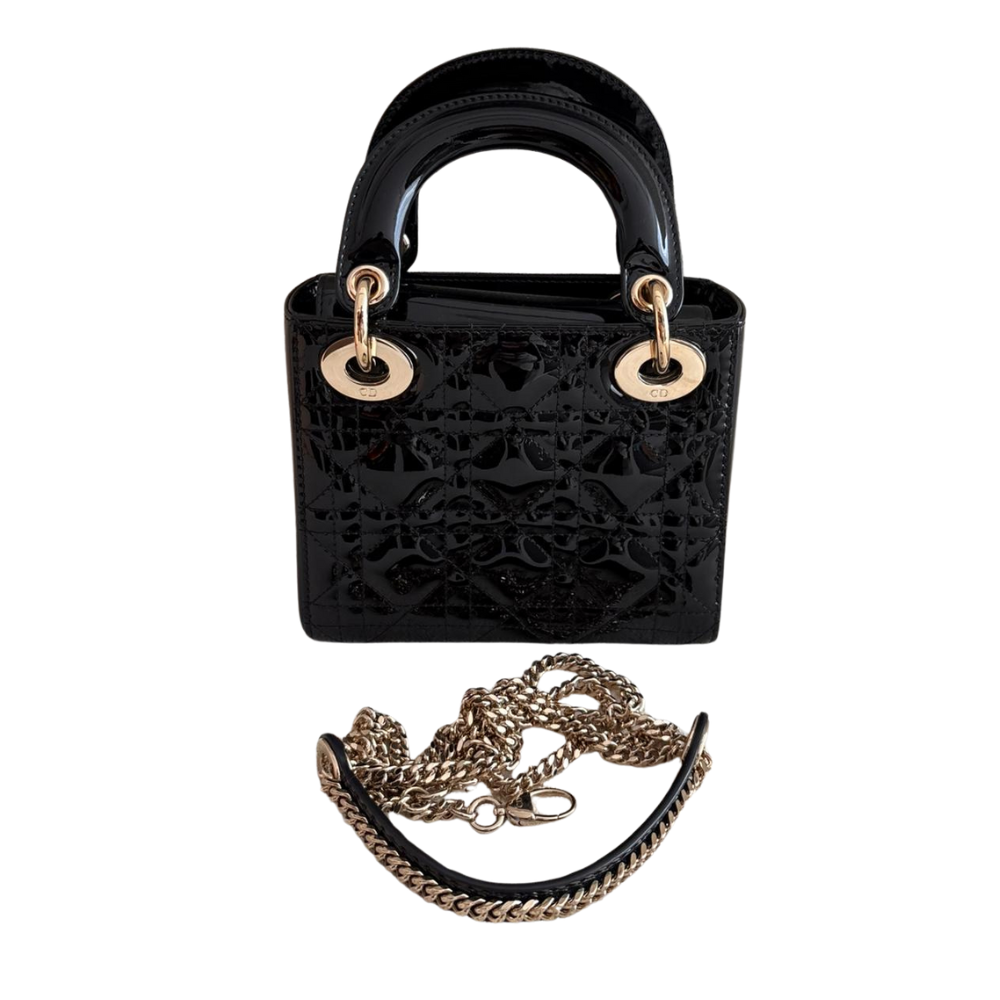Patent Cannage Mini Lady Dior Black