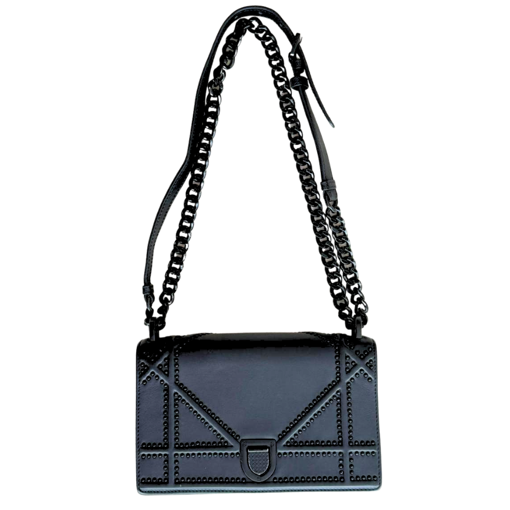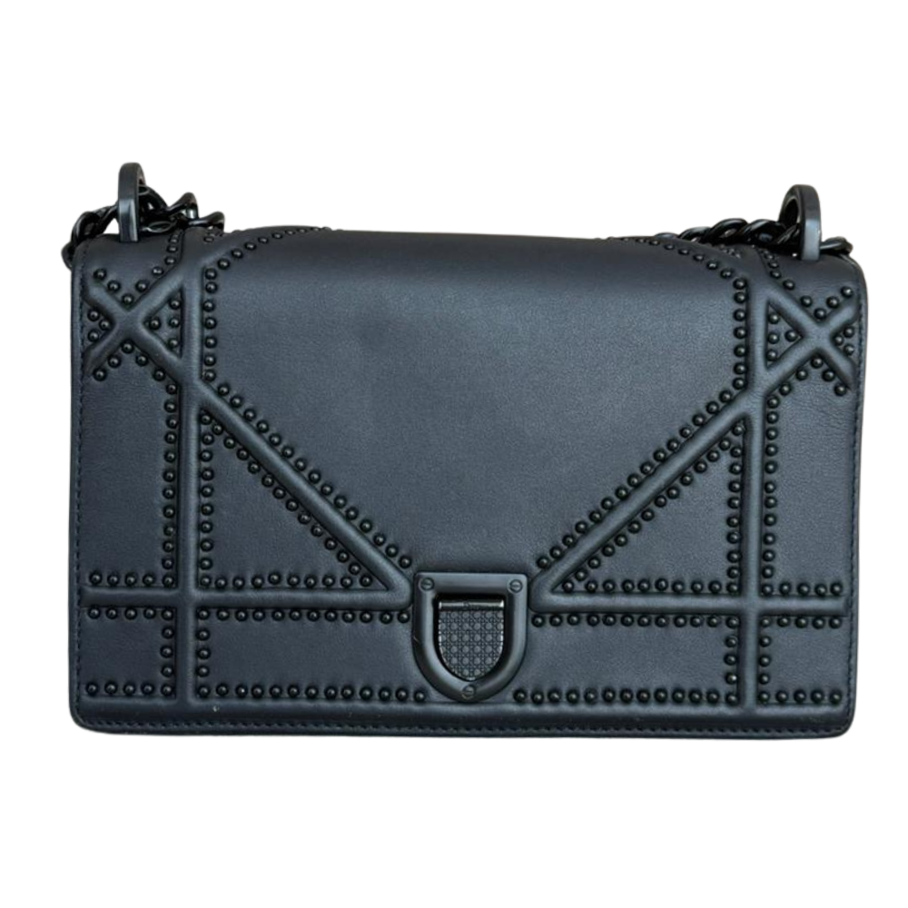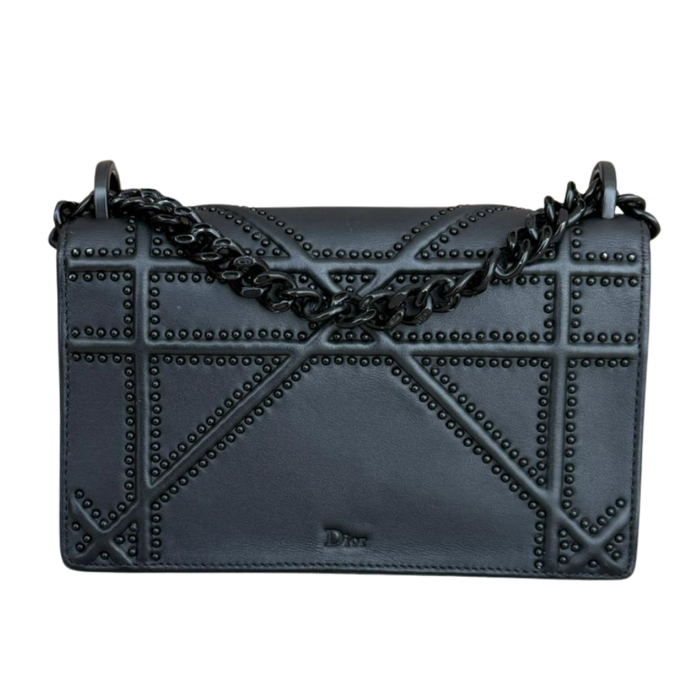 CHRISTIAN DIOR So Black Leather Small Studded Diorama Flap Shoulder