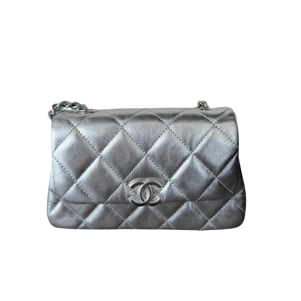 ChanelChanel Rhomboid Mini Flap – Silver Calfskin, 2025Includes: Full set