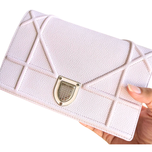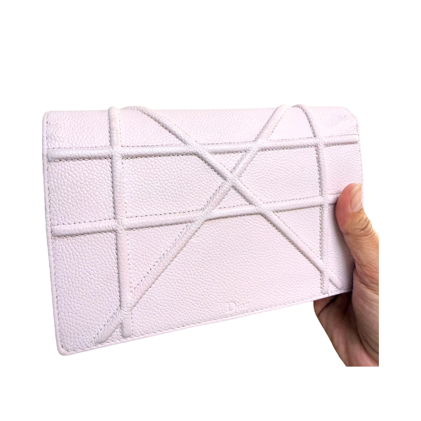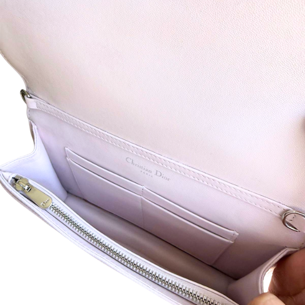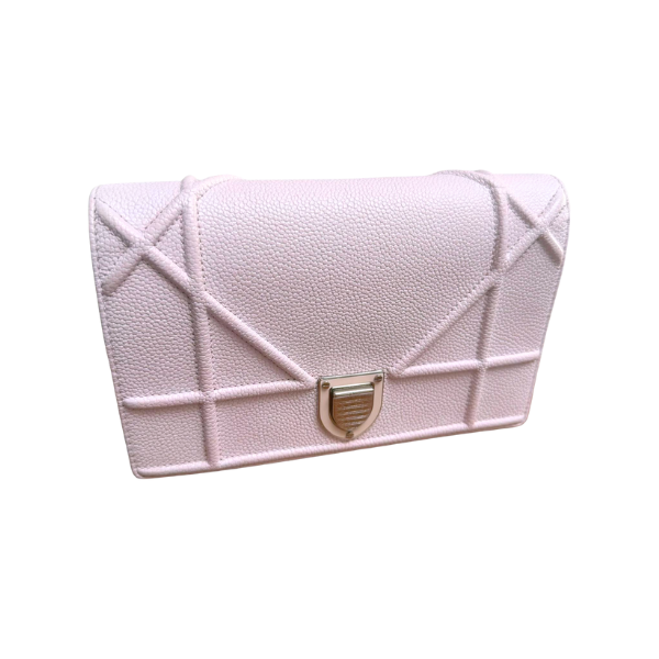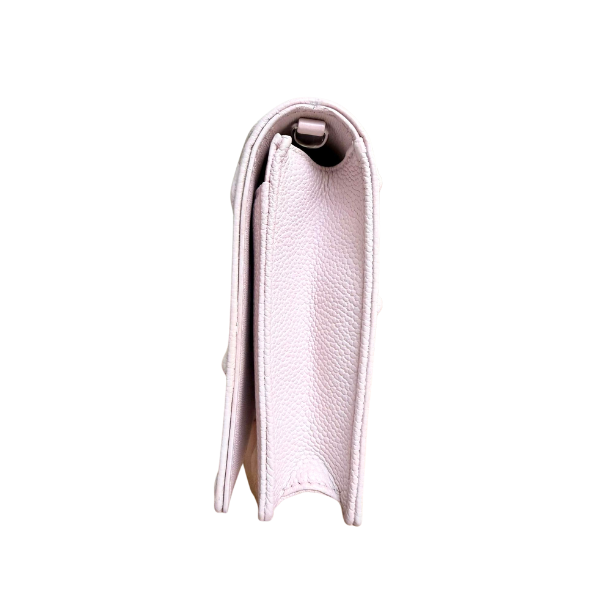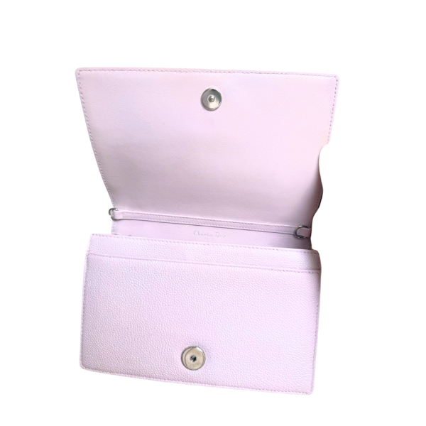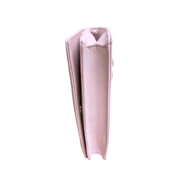 Color: Light pink / powder pink Features: Multiple compartments and a zippered pocket Condition: Very good (missing strap) Can be worn as a clutch