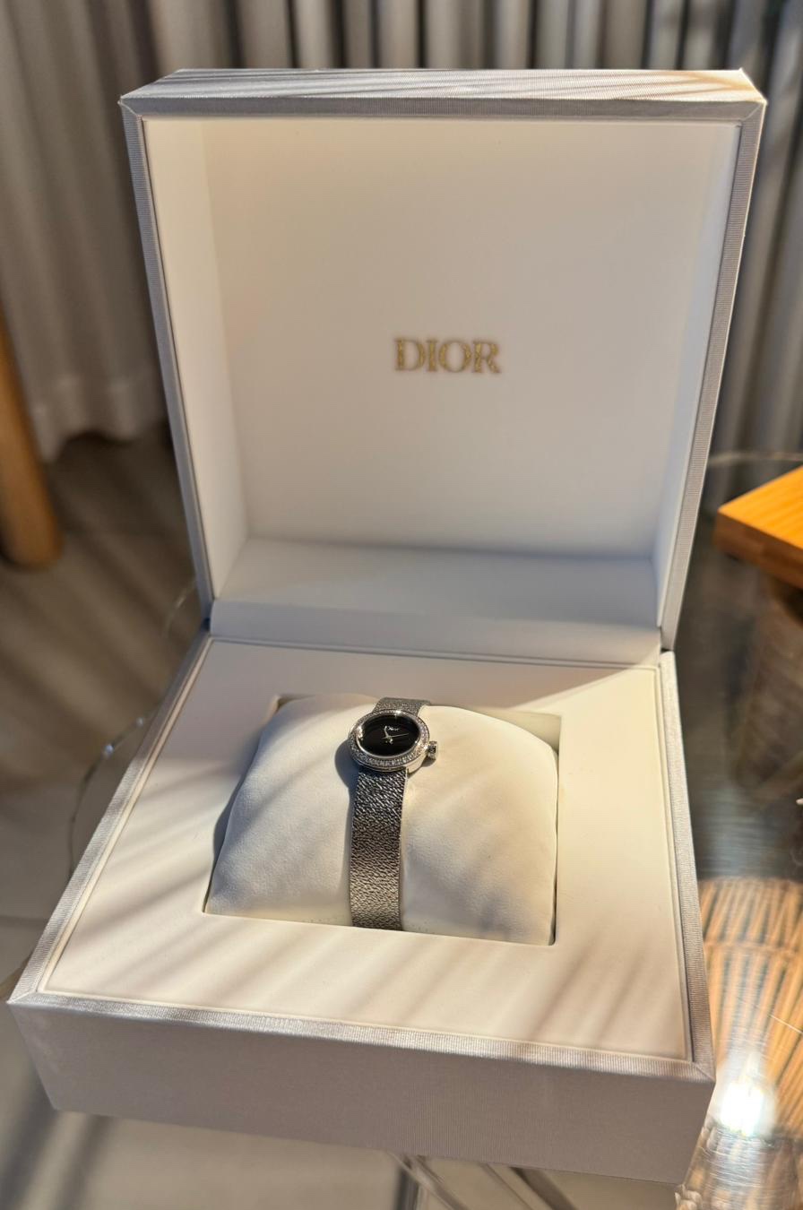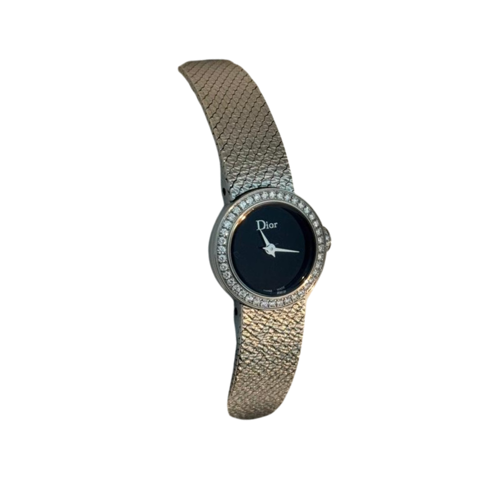 Dior La Mini D de Dior Satine – 19mm Black dial with a diamond-set bezel