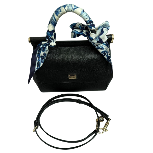 Dolce & Gabbana Black Sicily Dauphine Leather Embellished Top Handle Bag