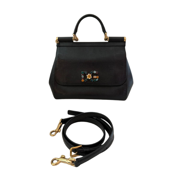 Dolce & Gabbana Black Small Iguana Millennials Shoulder Bag