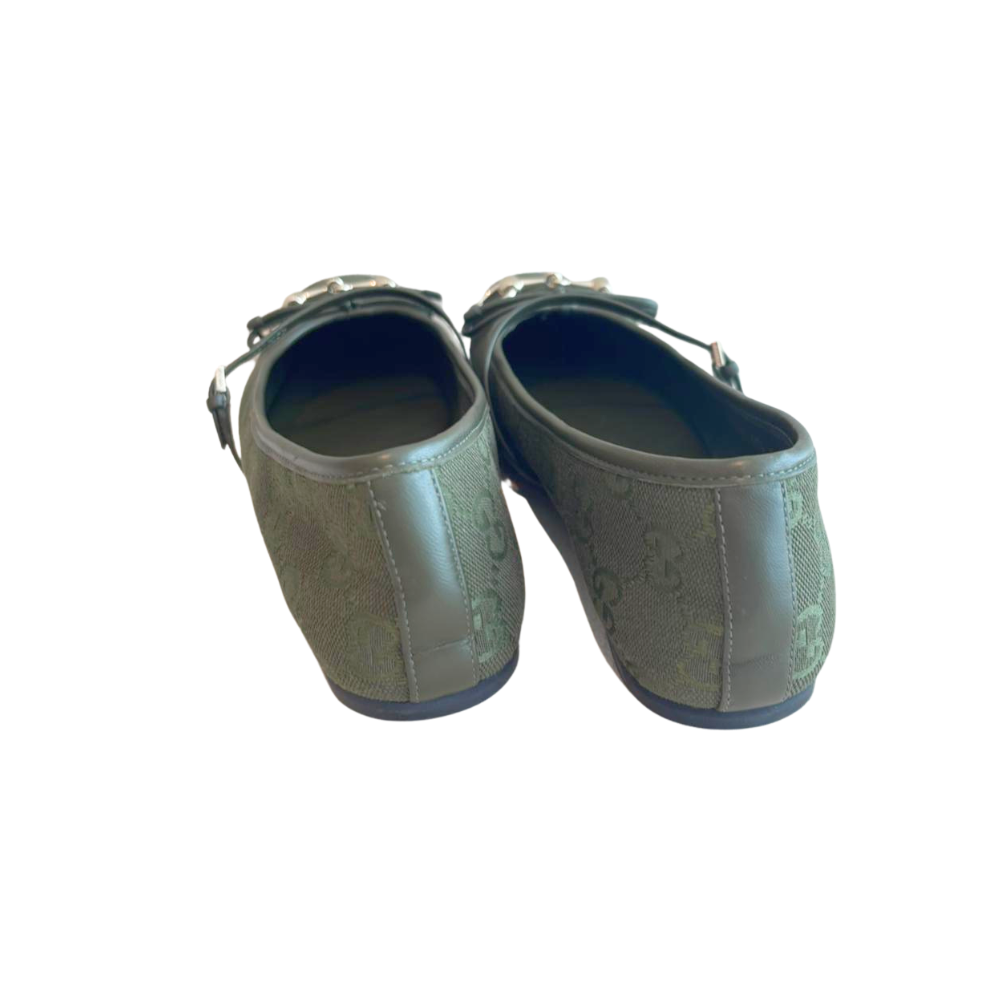 Women's Gucci Horsebit ballet flat in dark green GG canvas