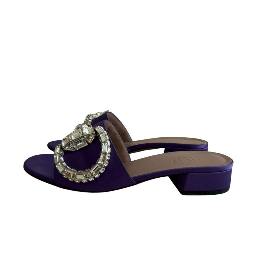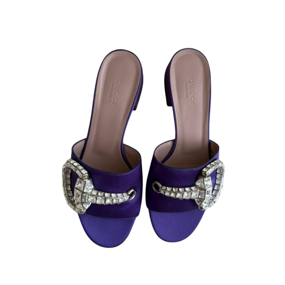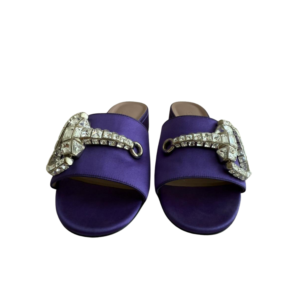 GucciMaxime Crystal Horsebit Suede Slide Sandals purple 37