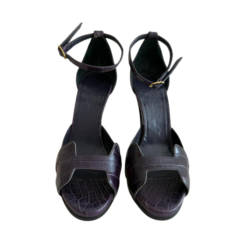 Hermes Purple Crocodile Leather Open Toe Pumps