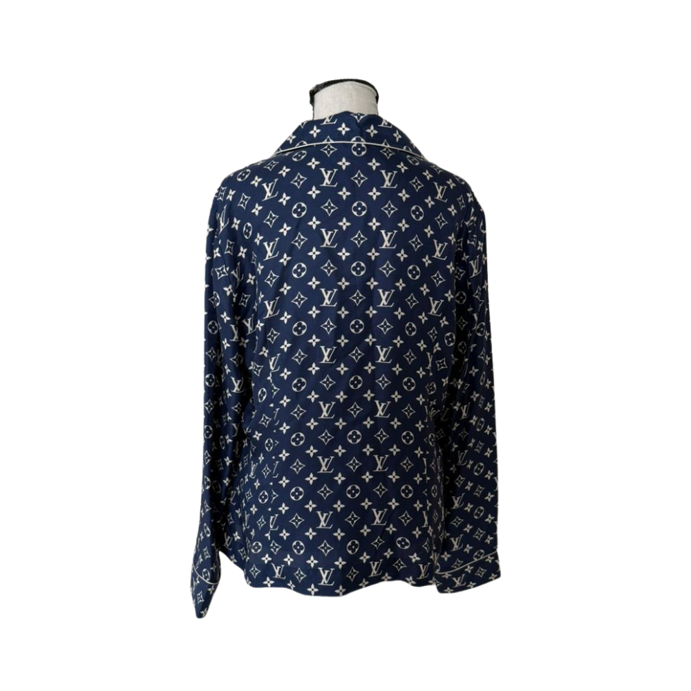 LOUIS VUITTON Louis Vuitton Blue Monogram Silk Shirt Size: 44 (M/L) Condition: Like newInclusions: Full set