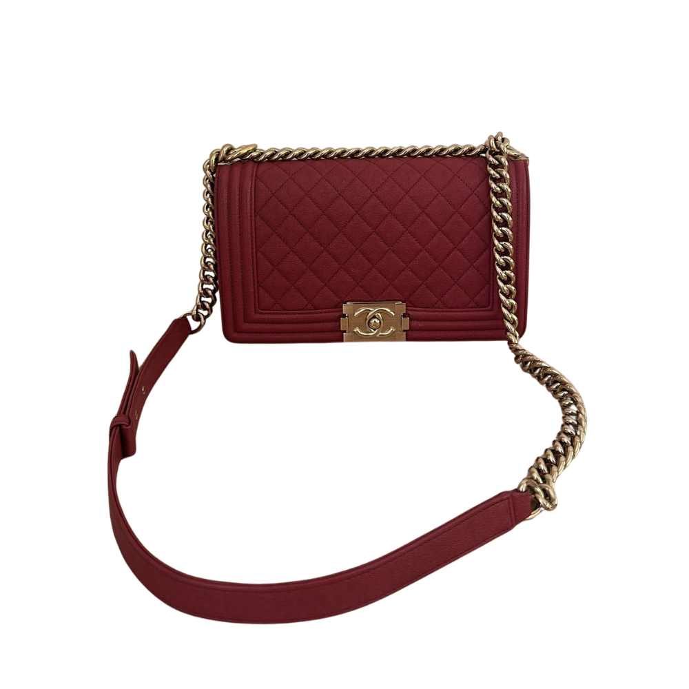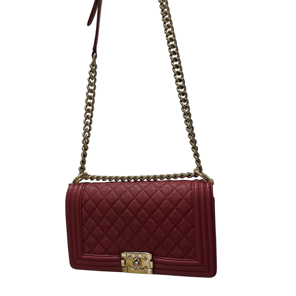 chanel Boy Medium red Crossbody Bag in Caviar Leather Gold hardware