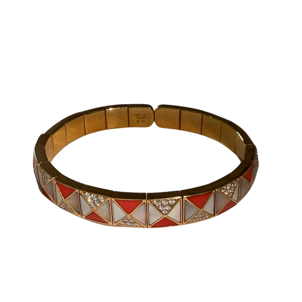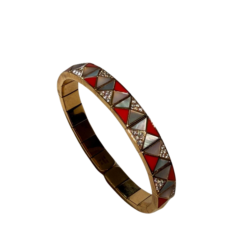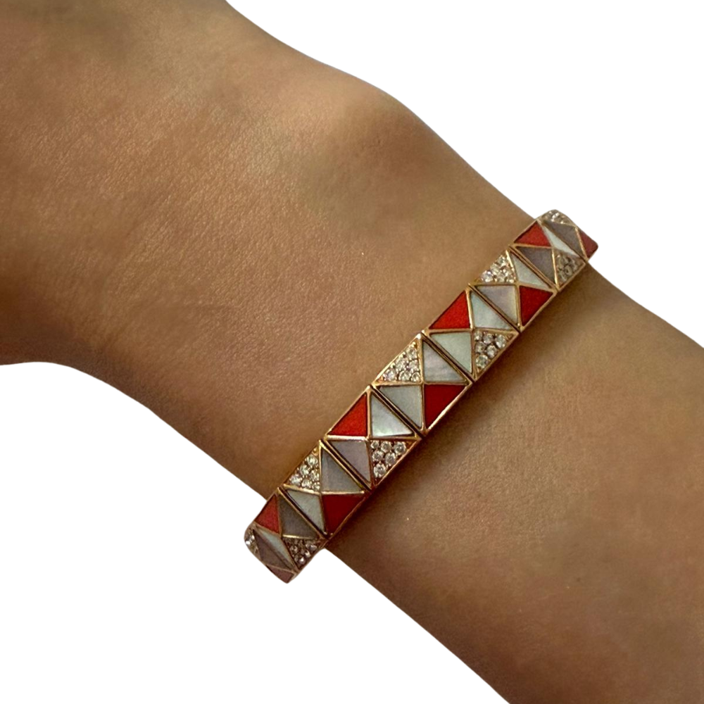 Butani Deco Edge Bangle with Red Coral, White Mother of Pearl