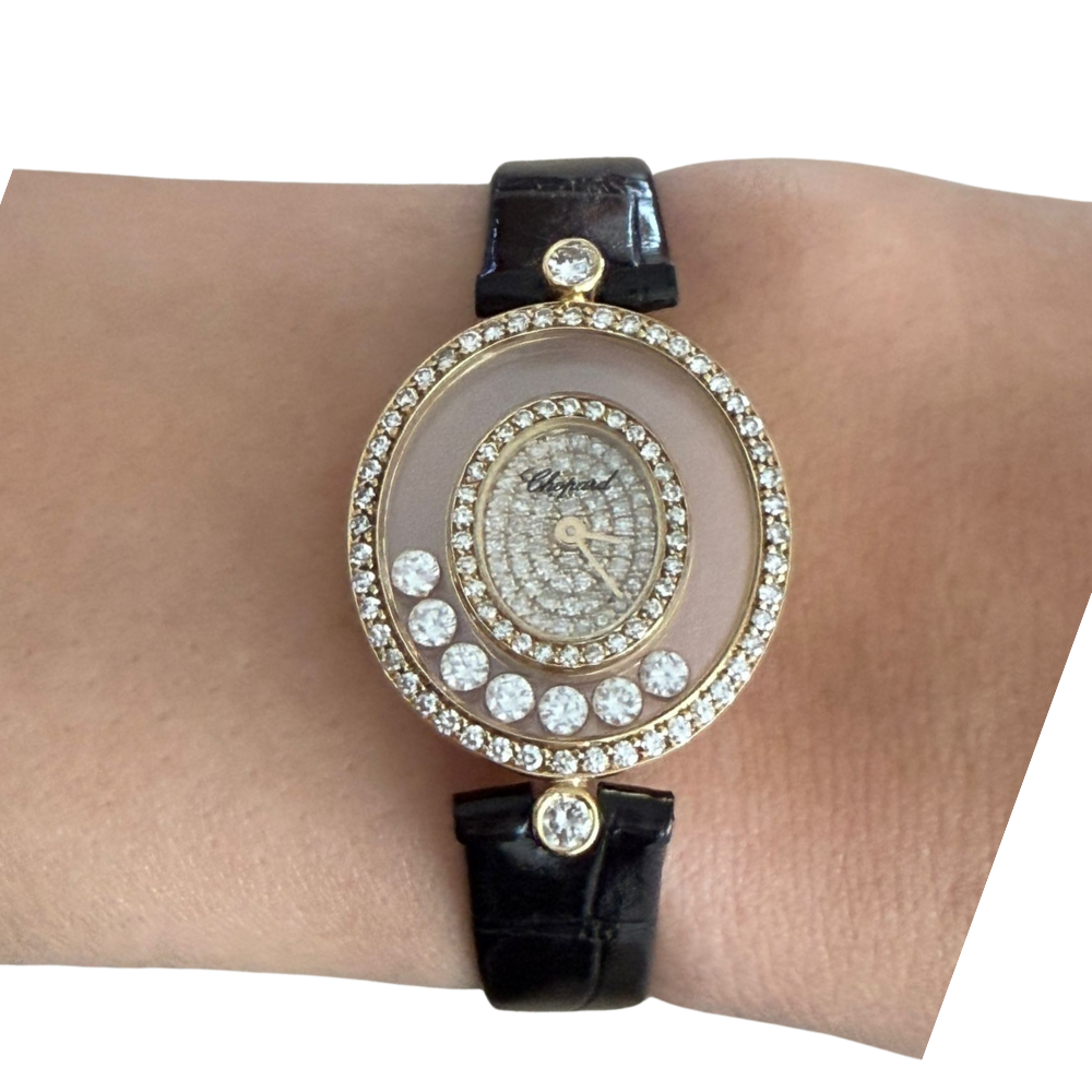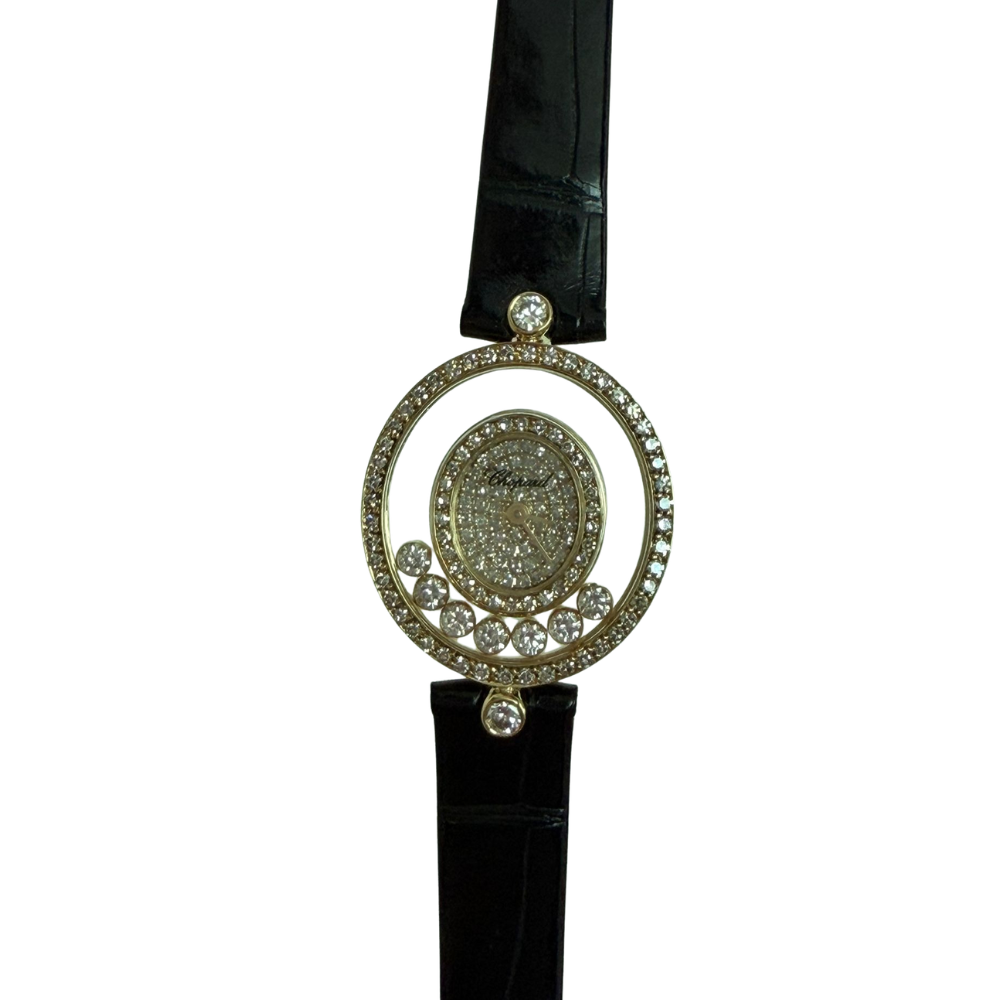 Chopard Happy Diamond YellowGold 24mm Paved Diamond Dial & Bezel No Paper.
