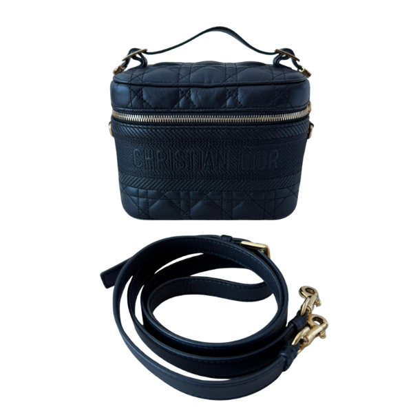 Model: Lambskin Cannage Small DiorTravel Vanity Case – Black Size: Small Condition: Excellent, gently usedIncludes: Full set except invoice