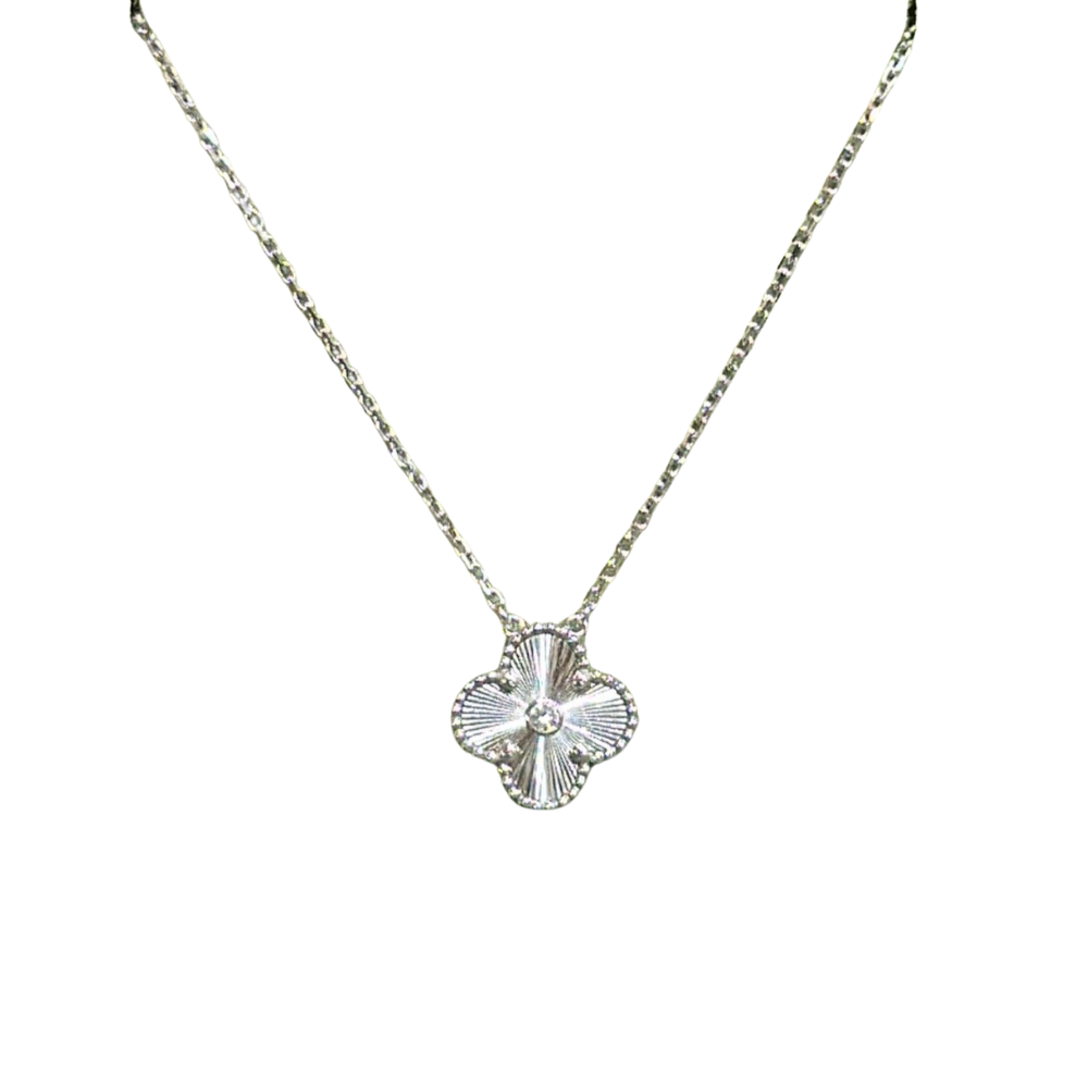 VAN CLEEF & ARPELS White Gold And Diamond Guilloche Holiday Vintage Alhambra Pendant