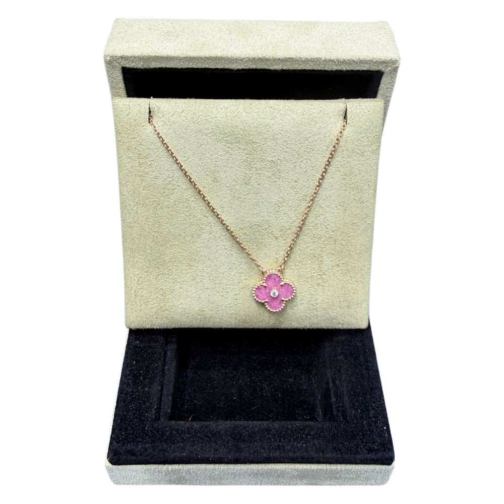 Van Cleef & Arpels Vintage Alhambra Rhodonite Diamond 2021 Holiday Pendant