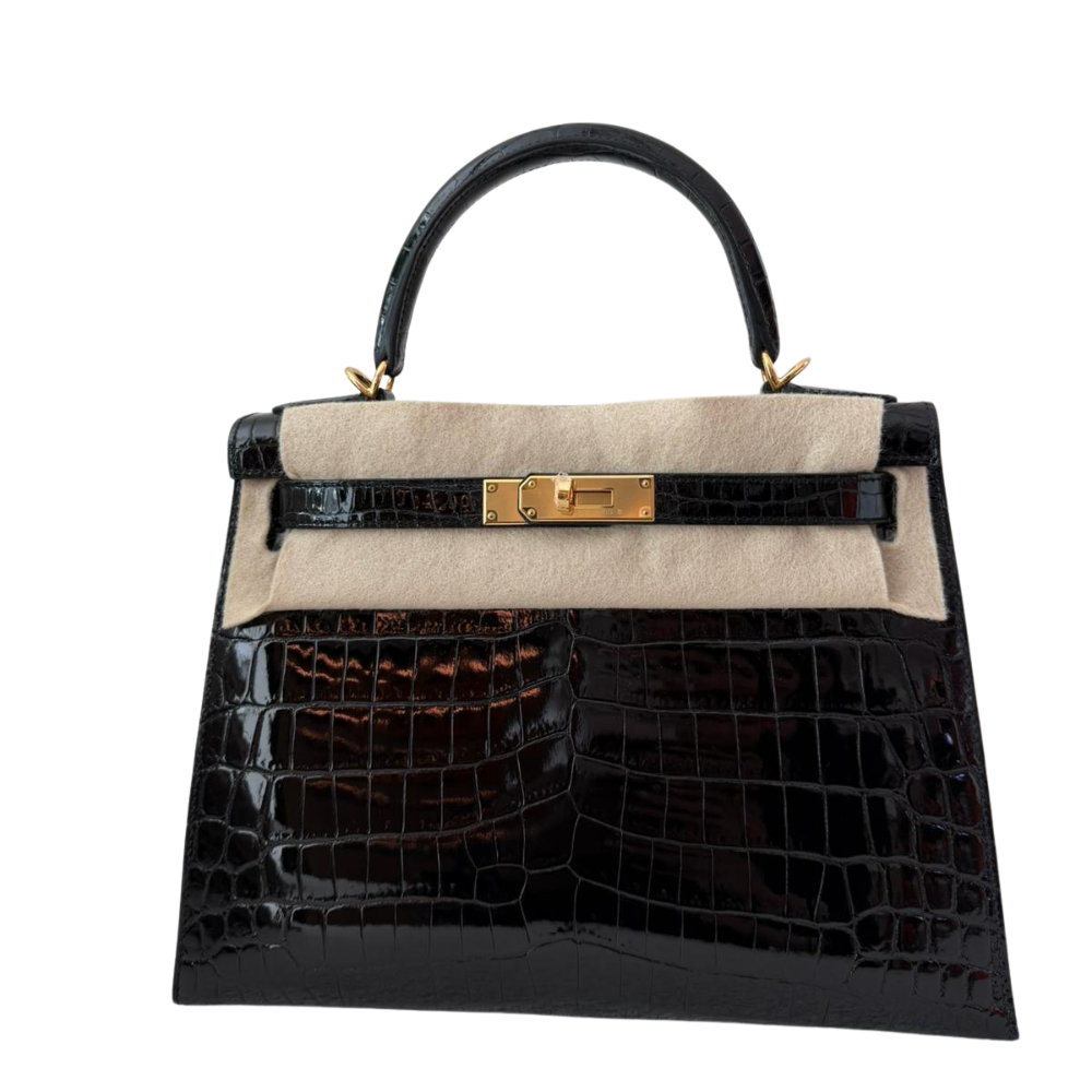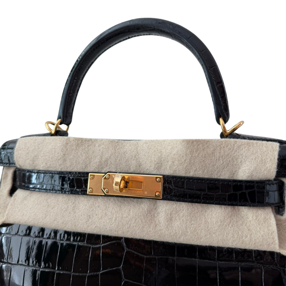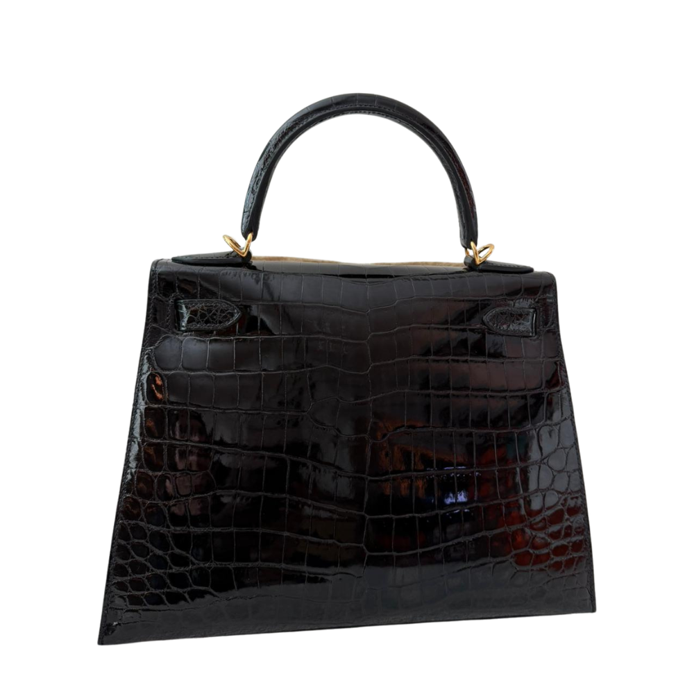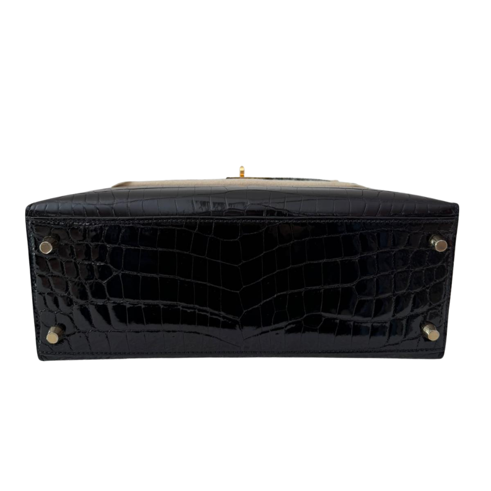 Hermès Kelly 28 Sellier bag Shiny Niloticus leather with gold hardwareColor: Black