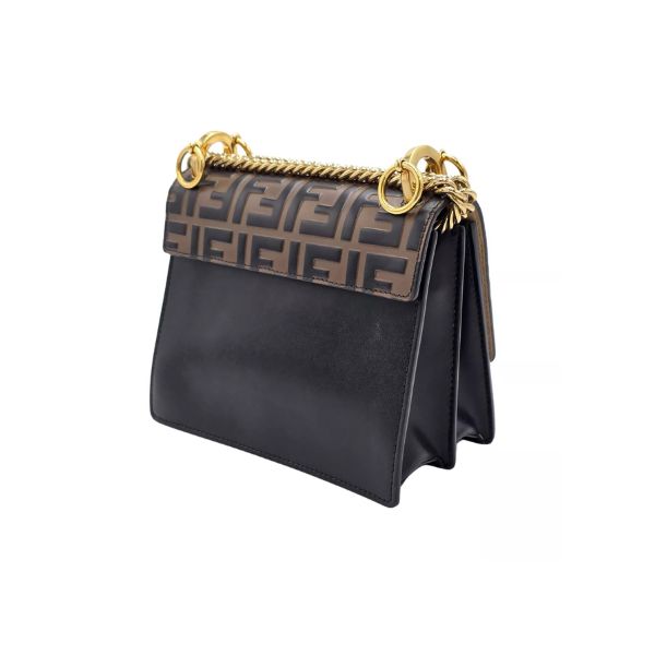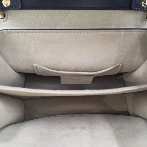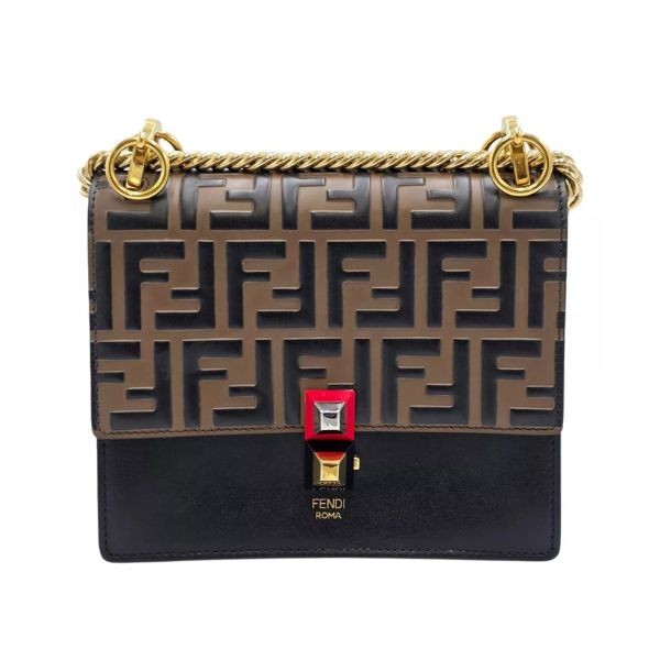 Condition: Excellent Crafted from FF leather with gold-tone accents Chain-leather shoulder strap, jewel fastening closure Suede-lined interior Minor exterior stain and scratch, minor interior stain