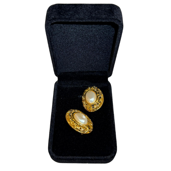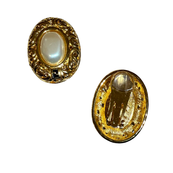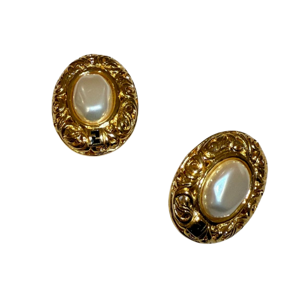 Excellent pre-owned condition. Rare Fendi vintage Fendista iconic logo black F , white oval pearl clip earrings.