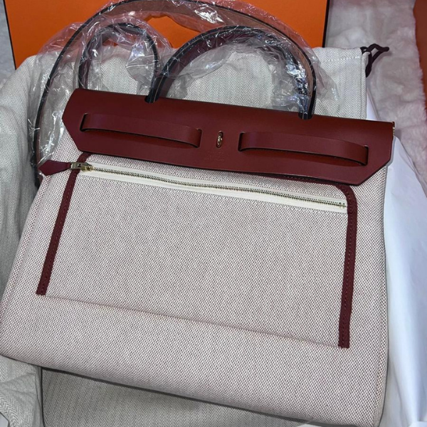 Material: Cuivre Vache Hunter leather and Ecru Toile canvas Design: Brides de Gala Desordre Hardware: Gold Condition: Brand new Size: 31 cm