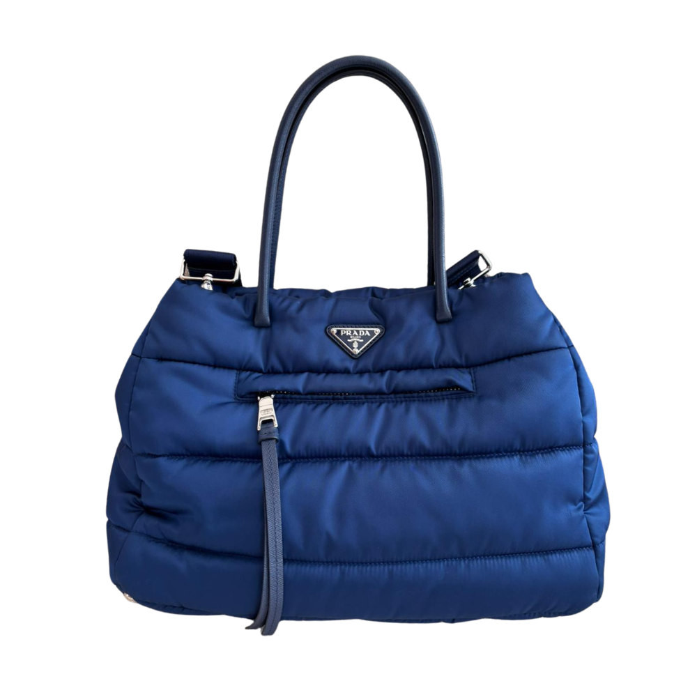 Prada Bomber Tote Tessuto Blue Nylon Bag