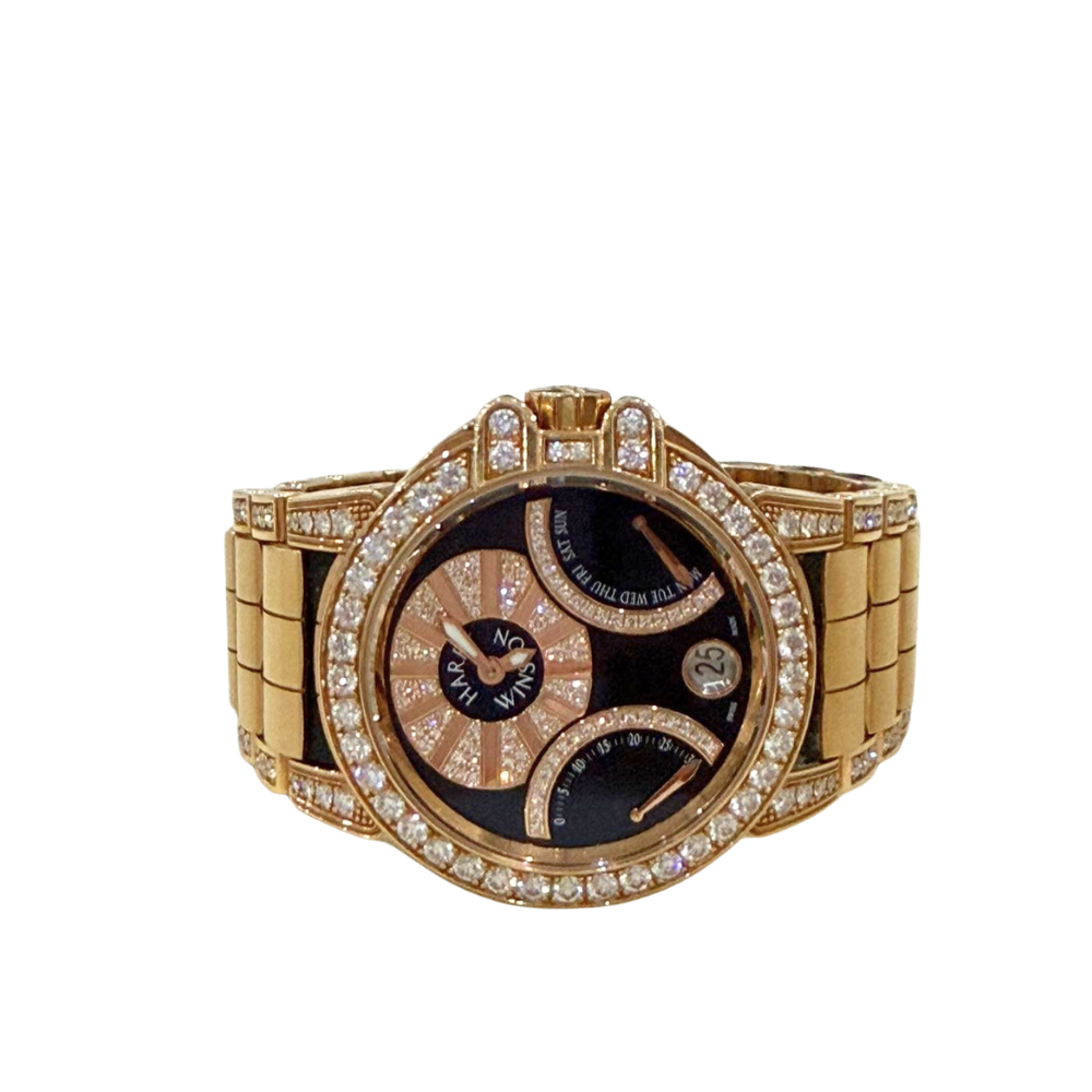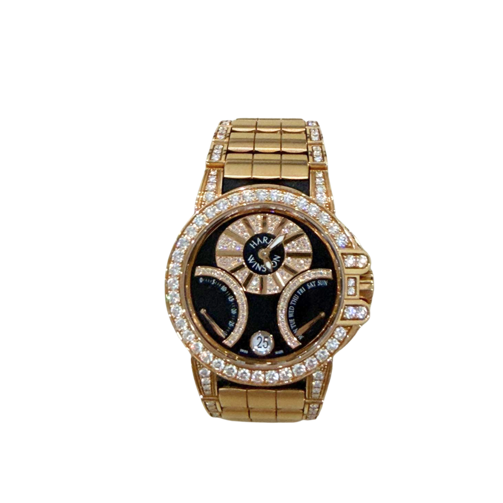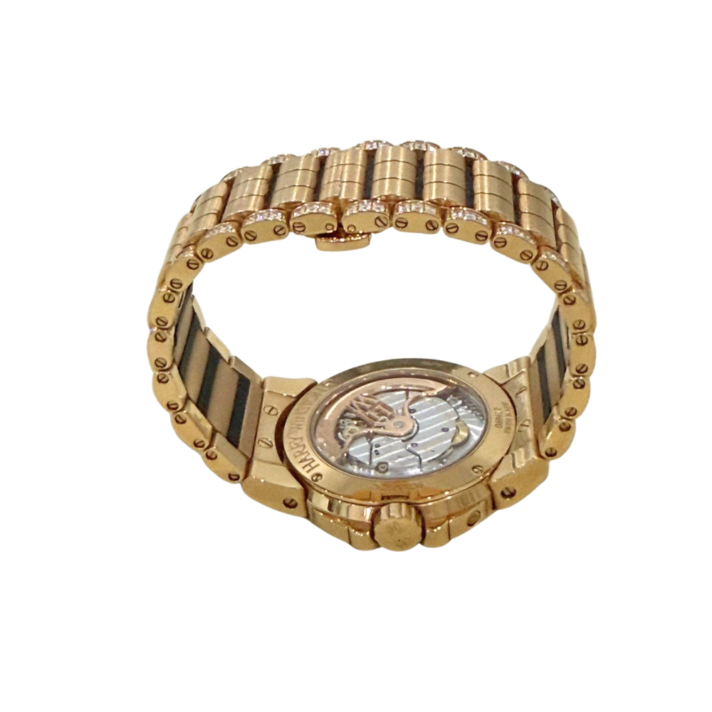 Harry Winston Ocean Biretro 36mm in Rose Gold with Diamond Bezel on Rose Gold Bracelet with Black Dial