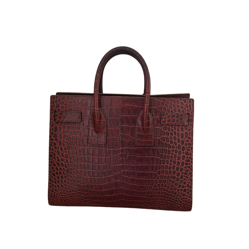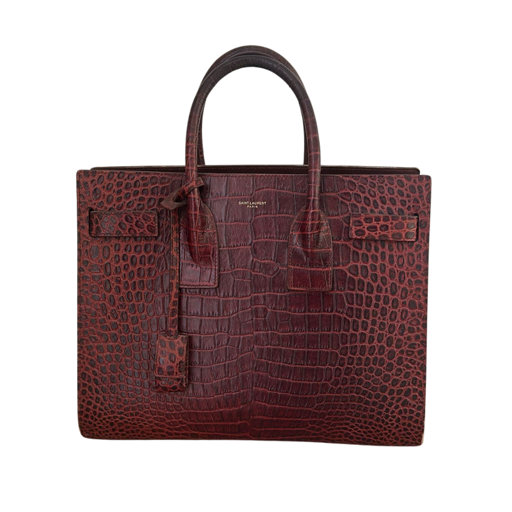 Saint Laurent Burgundy Croc Embossed Leather Sac De Jour Bag