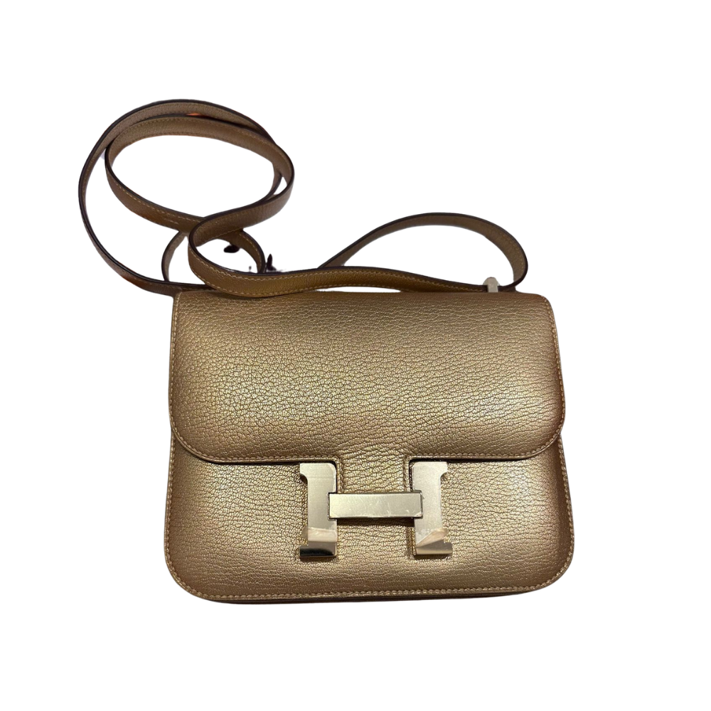 HermèsConstance Mini Doré Metallic Chevre, Permabrass HardwareCondition: Used, excellent — almost like new