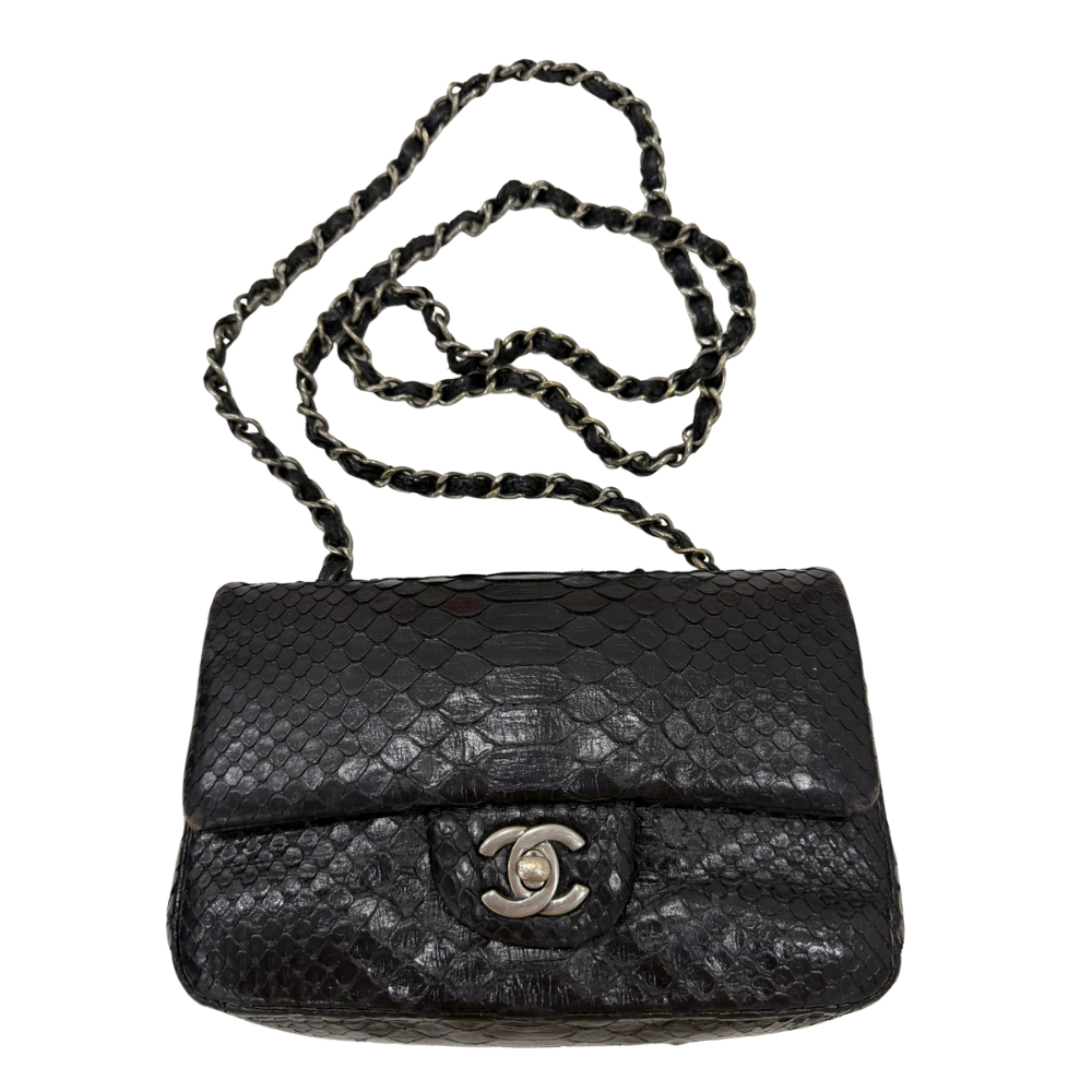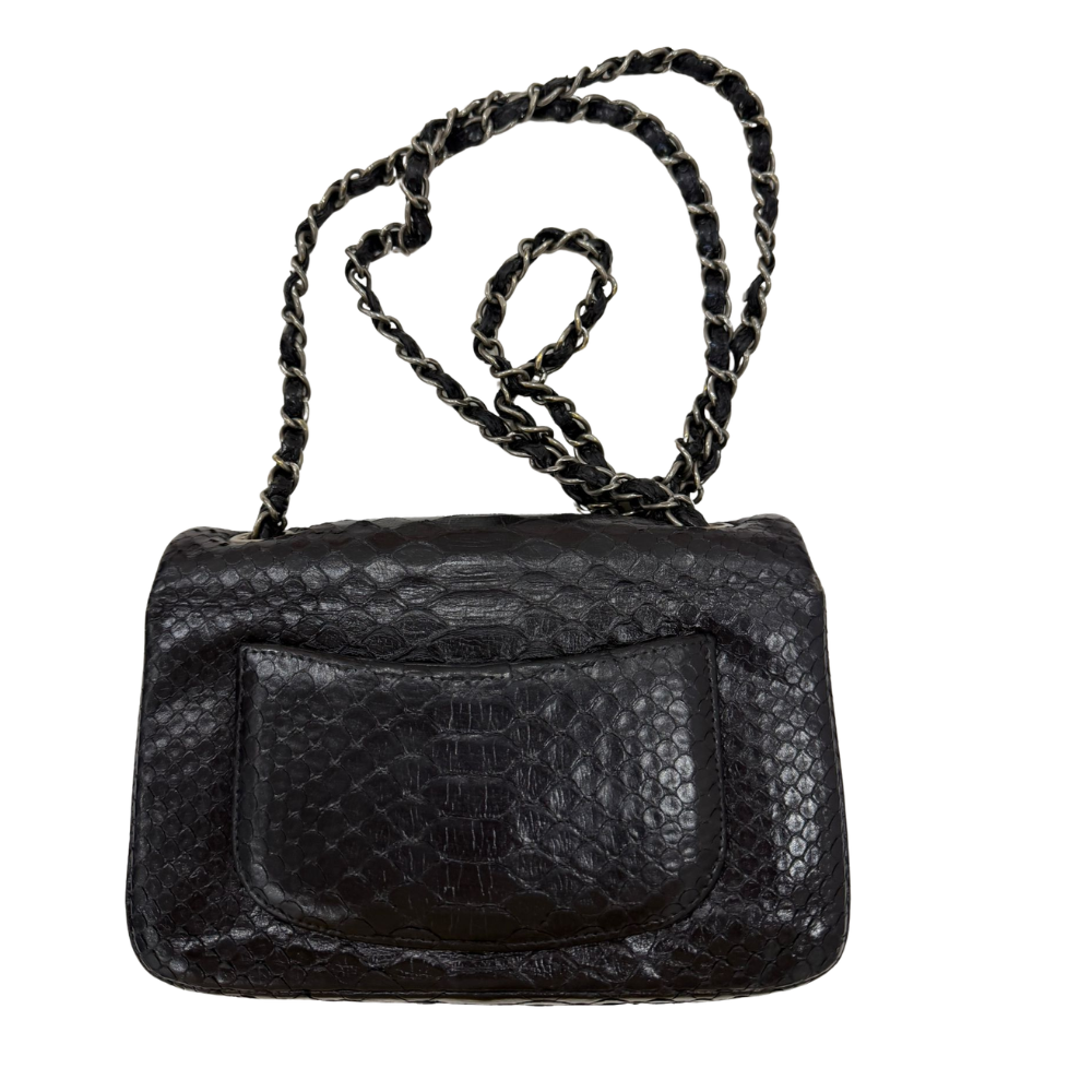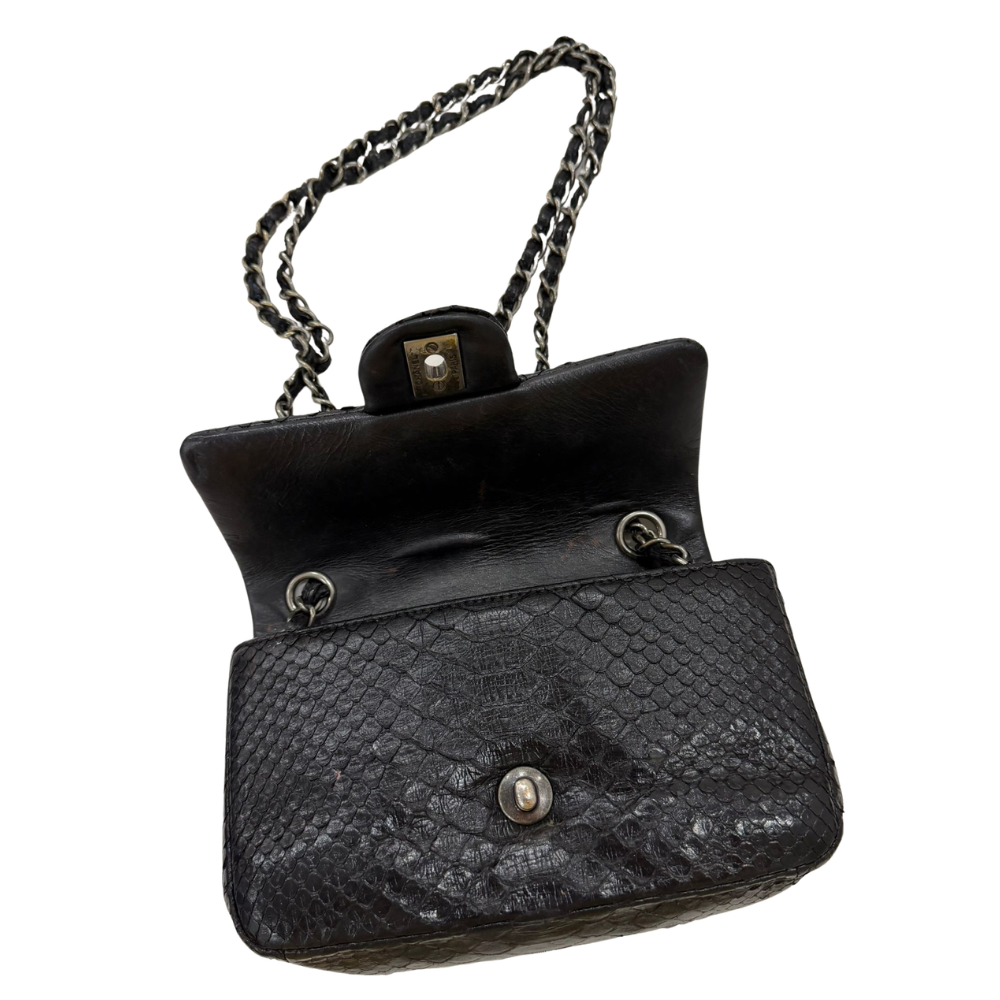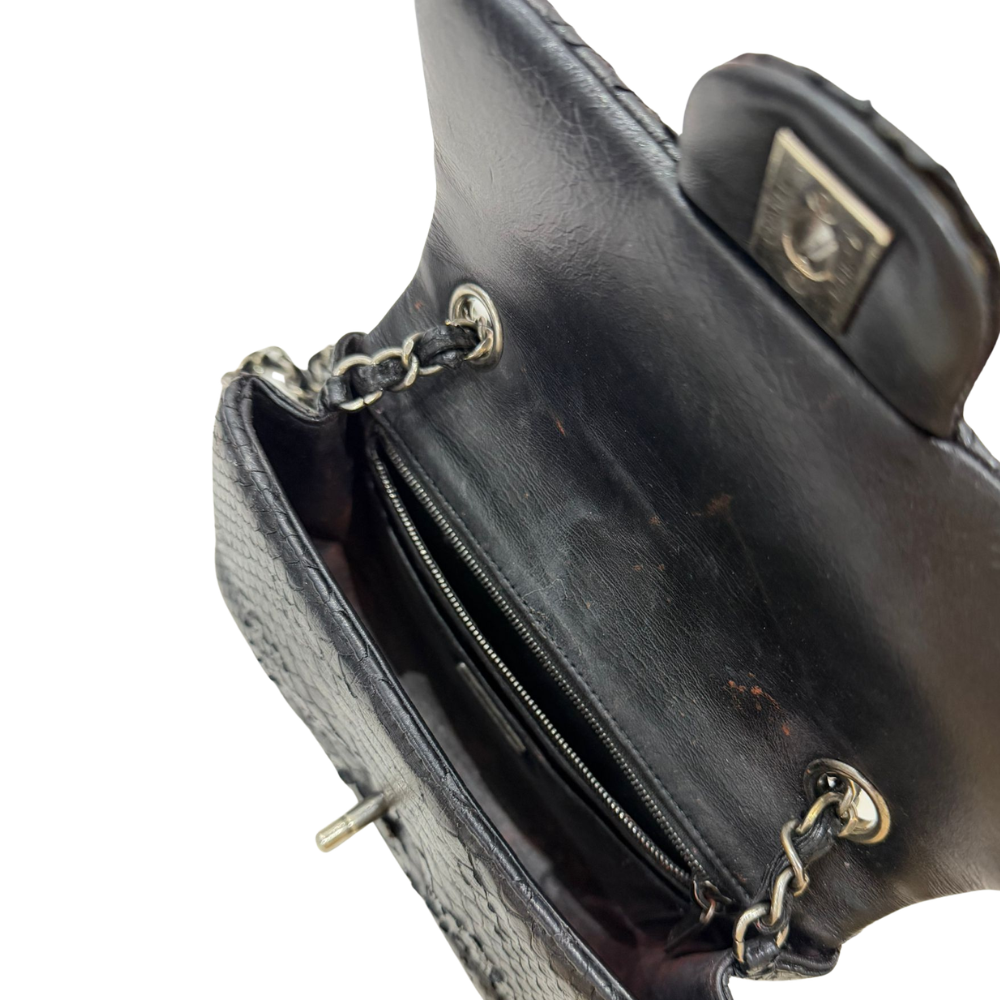 Chanel Mini Classic Flap Black Python Silver Hardware