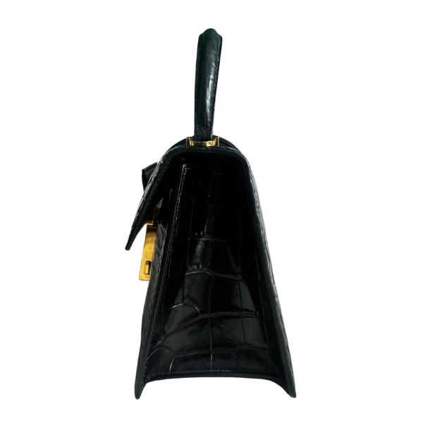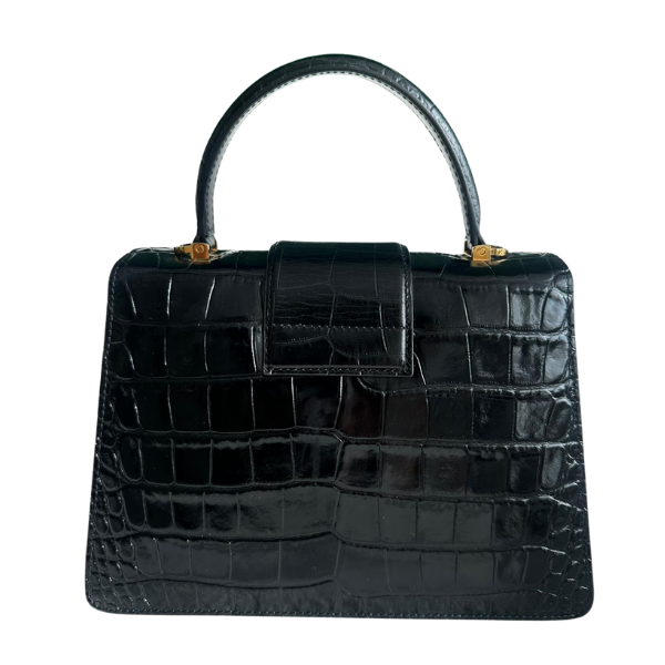Model: Mini Shiny Croc-Embossed Top-Handle Bag Size: 25 cm Condition: Used – in excellent condition Includes: Invoice, dust bag, and strap