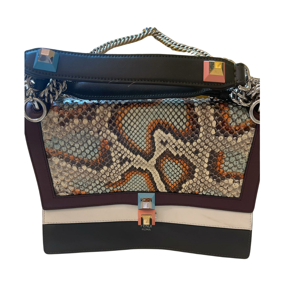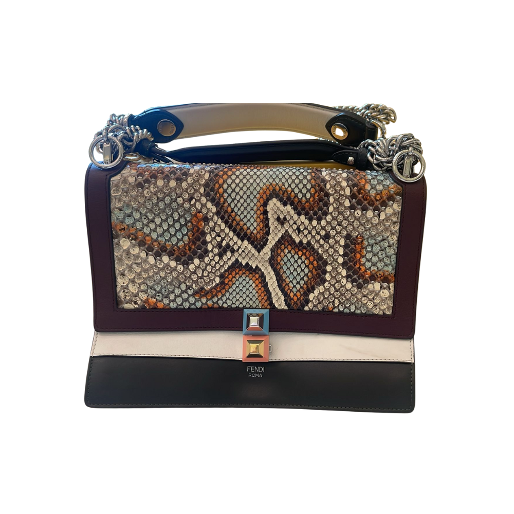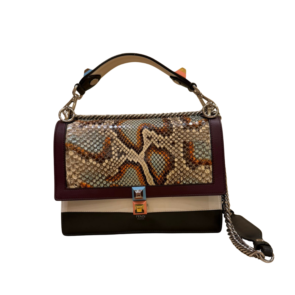 Fendi Multicolor Snakeskin and Leather Studded Small Kan I Shoulder Bag