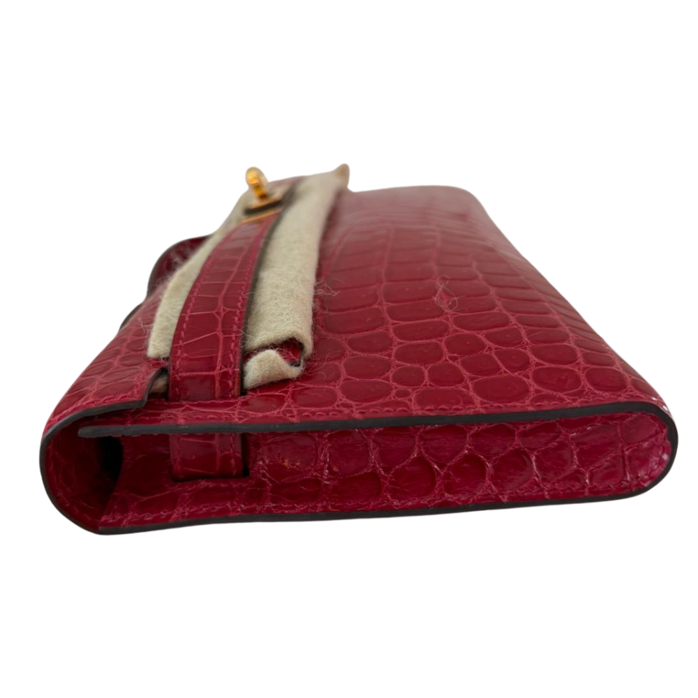 HERMÈS Shiny Porosus Crocodile Kelly Cut Pochette