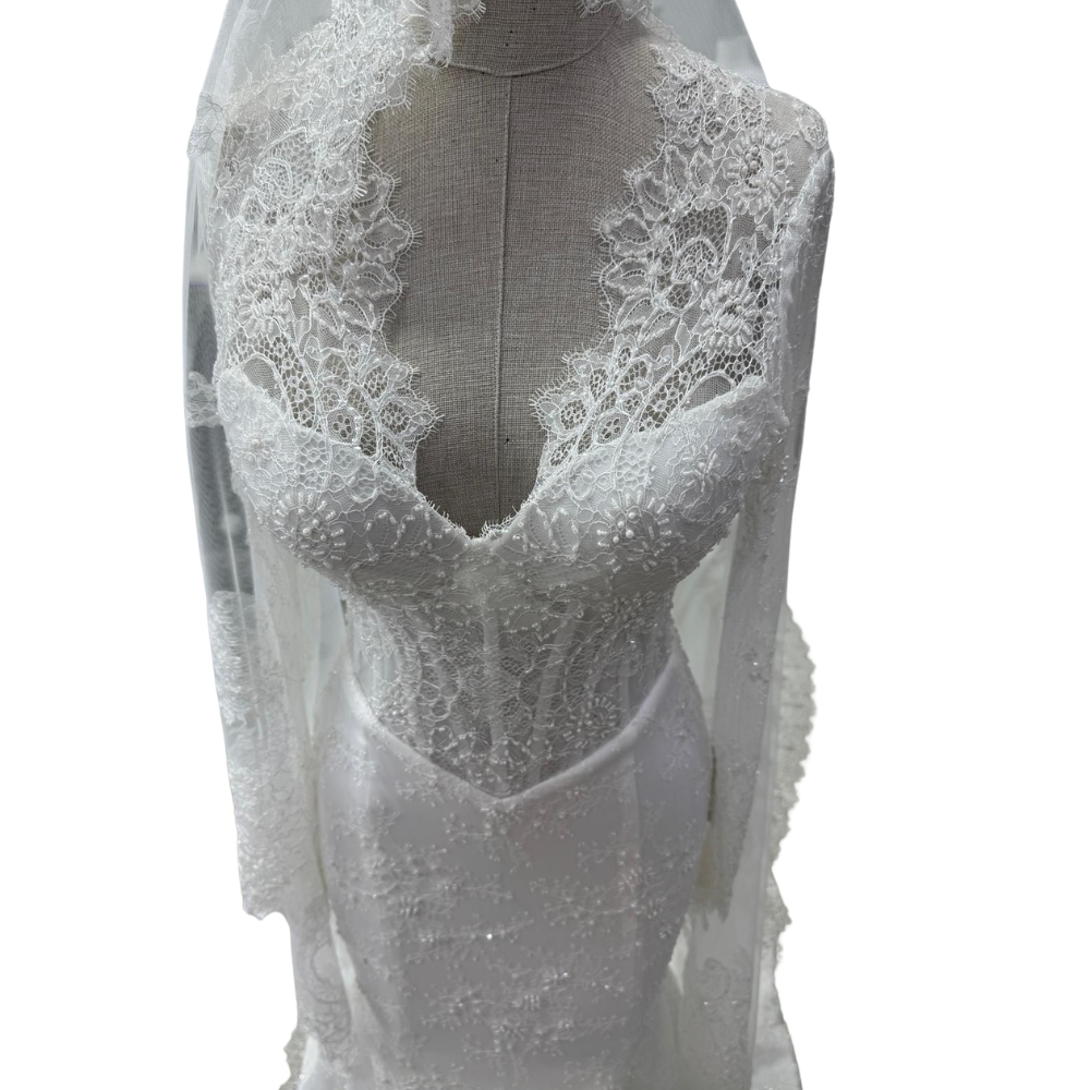 Embellished wedding dress with veil Size: MediumChest: 32Waist: 26First hip: 28