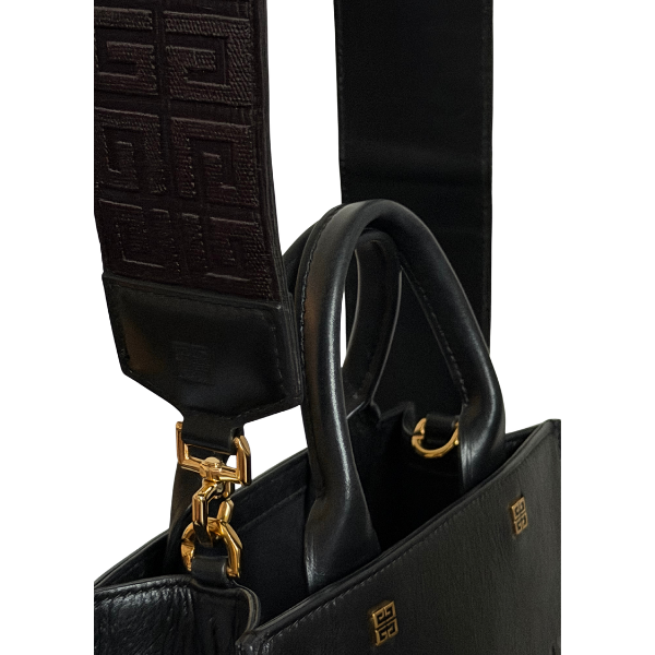 Material: Tumbled calf leather Details: Gold-toned hardware, tonal Givenchy logo debossed on the front, metal 4G details on both sides Strap: Removable shoulder strap in 4G canvas with calfskin leather details Size: Mini (L 19 × H 16 × W 8.5 cm) Made in: Italy