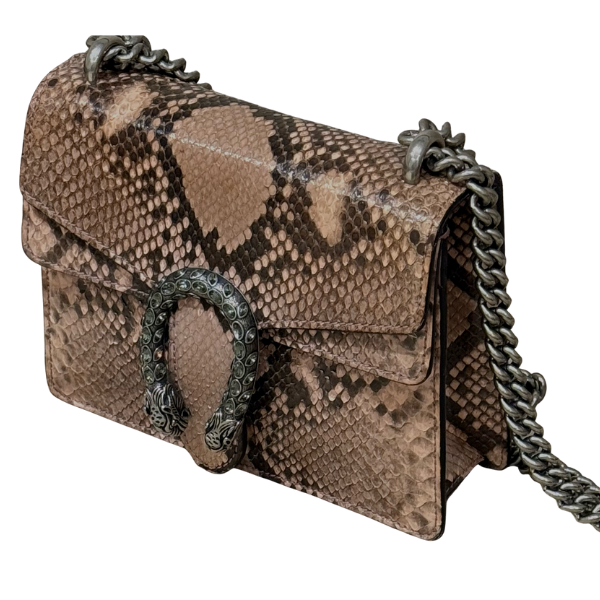 Pink/Brown Snakeskin Leather and Tiger Head Closure