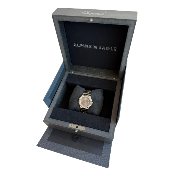 Chopard – Alpine Eagle 33 Watch Size: 33 Condition: Pre-Owned Color: Rose Gold Includes: Box & Warranty Card