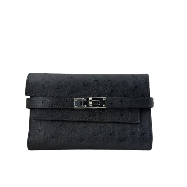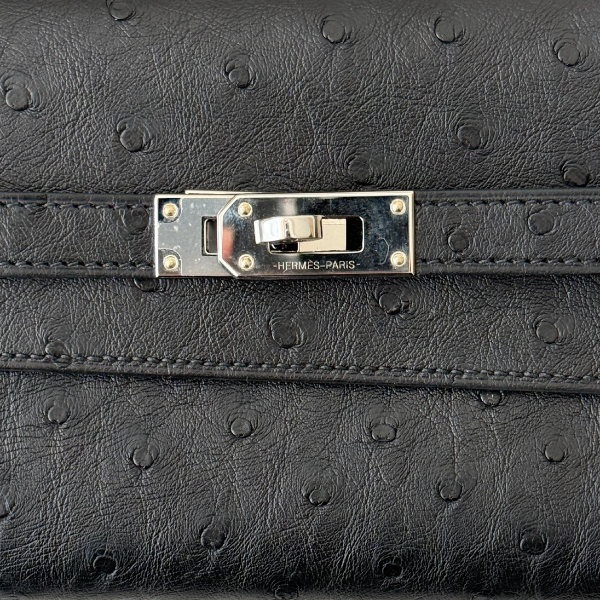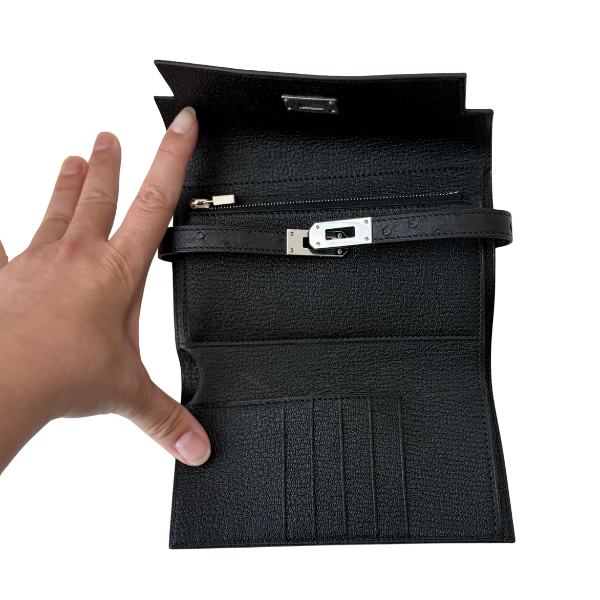 Hermes Kelly Depliant Wallet Medium Ostrich black silver hardware