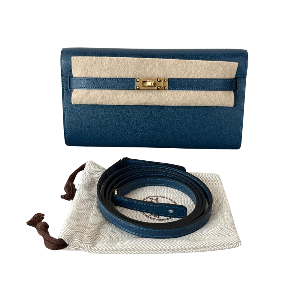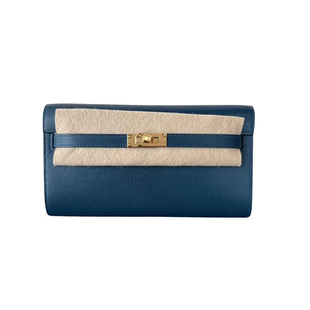 Hermès Kelly To Go WalletLeather: Chèvre ChamkilaColor: Deep Blue Hardware: Gold