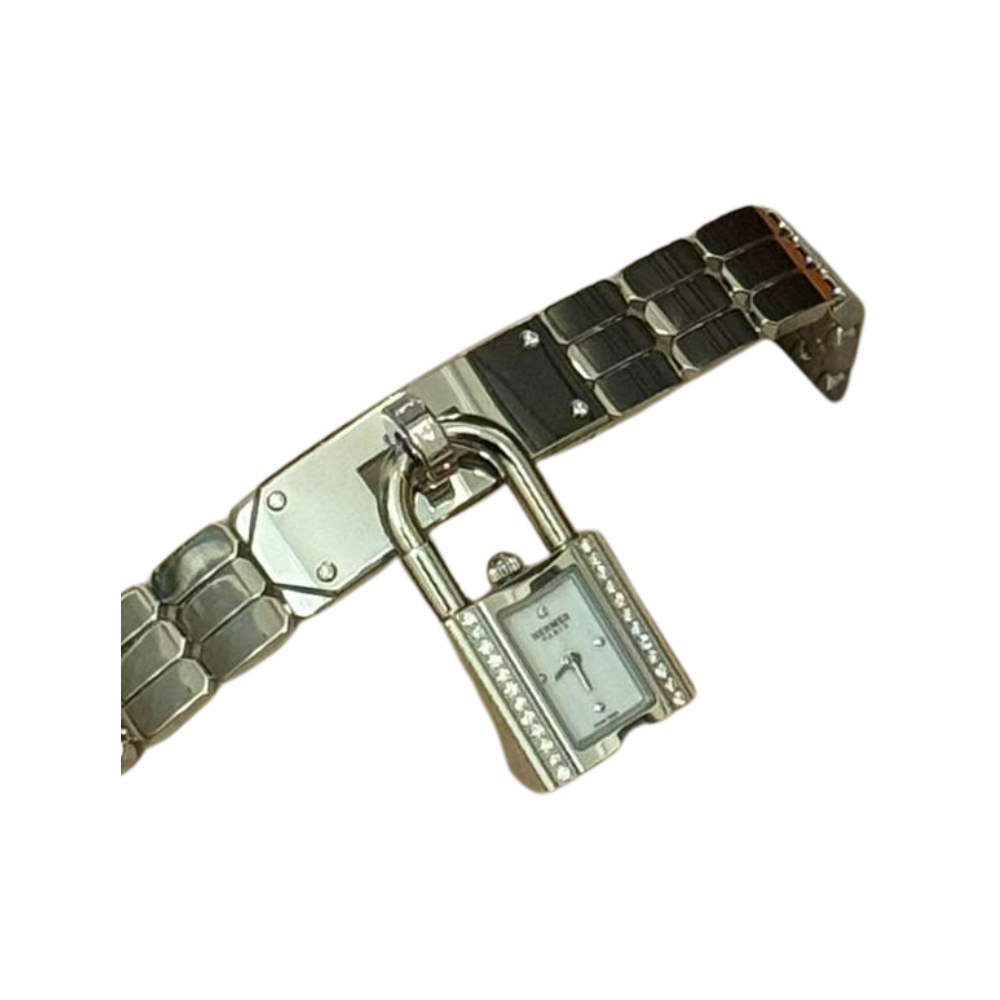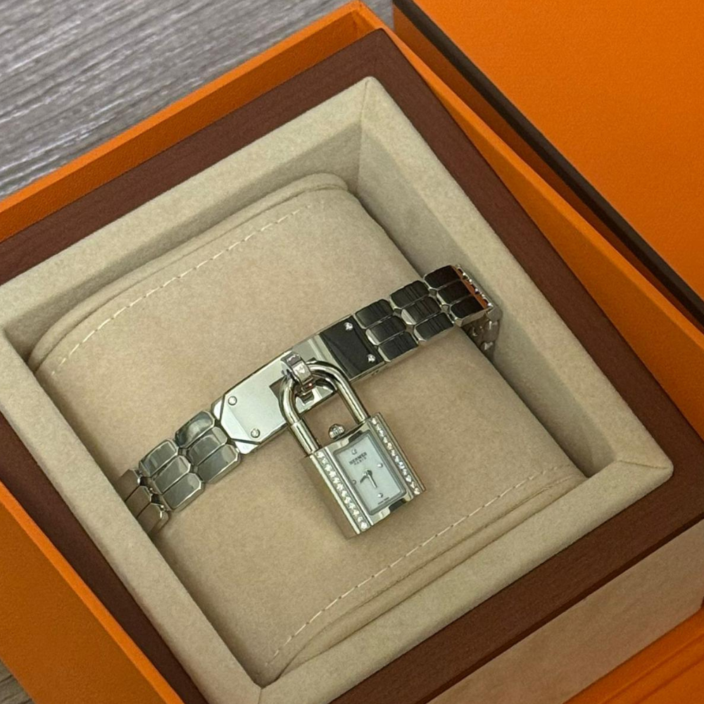 Hermes Kelly Watch Mini Model Size 16, Stainless Steel with Diamonds