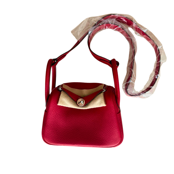 Hermès Mini Lindy Color: Rouge Radieux Leather: Togo Hardware: Palladium Condition: Brand New (Full Set)Accessories: All included