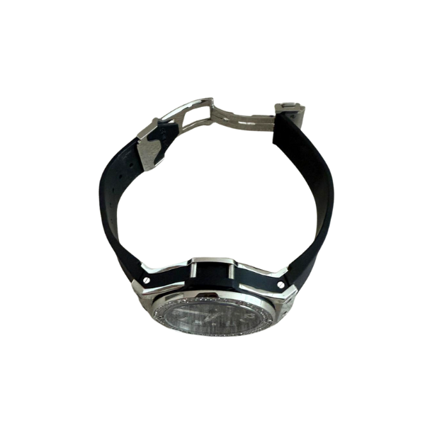 Movement: Quartz Dial: Black Strap: Black rubber (includes additional white rubber strap) Condition: Used, excellent
