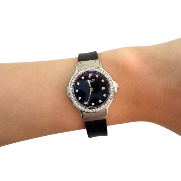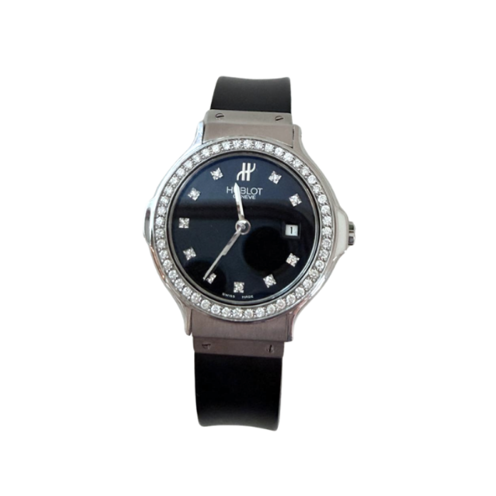 Hublot Classic Lady Watch – Steel 28mm with Black Diamond Dial & Bezel