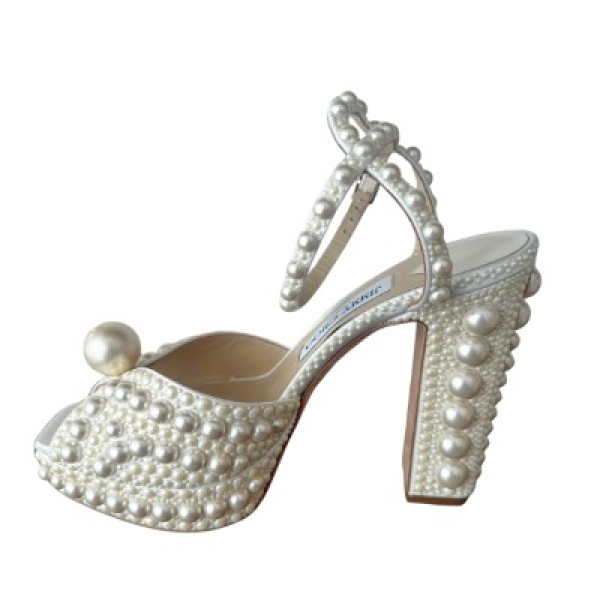 JIMMY CHOO Pearl Satin Sacaria 120 Sandals – White Size: 38 Condition: New Includes: Dust bag, box, and shopping bag