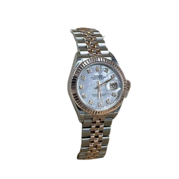 Rolex Material: Steel & Rose Gold Dial: Mother of Pearl with Diamond Markers Size: 28mm Model: 2022 Condition: Excellent Includes: Box + Warranty Card